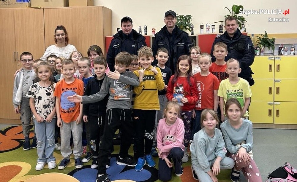 Ferie zimowe w województwie śląskim rozpoczynają się praktycznie już w najbliższą sobotę. Wielu z nas wyjedzie na zimowy wypoczynek poza nasze miasto. Wielu ferie zimowe spędzi w mieście, gdzie przygotowano wiele atrakcyjnych sposobów spędzania wolnego czasu. Aby ten czas miło wspominać, należy nie zapominać o bezpieczeństwie. Dzielnicowi z Komisariatu V Policji w Katowicach asp. Daniel Janiszewski, asp. Jacek Jaroszewski oraz sierż. szt. Piotr Szlęk rozmawiali z dziećmi o bezpieczeństwie w czasie zimowych ferii. Pomimo że warunki atmosferyczne są bardziej jesienne niż zimowe, to już za kilka dni ma nadejść załamanie pogody i powróci zimowa aura. Wiedząc o tym, że dzieci i młodzież bardzo często zimą wybierają zabawę na lodzie i śniegu, policjanci przypomnieli pierwszoklasistom, że nigdy nie należy wchodzić na zamarznięte stawy, rzeki, jeziora nawet w największy mróz. Wchodzenie na zamarzniętą taflę wody zawsze jest ryzykowne. Pokrywa lodu ulega ciągłym zmianom, również dobowym i nigdy nie ma tej samej grubości na całym zbiorniku. Nieprzemyślane, lekkomyślne korzystanie z uroków zimy, może zakończyć się tragicznie. Dlatego, jeżeli ktoś ma ochotę pojeździć na łyżwach, niech zawsze wybiera przygotowane do tego lodowiska, a nie zamarznięte jeziora czy też stawy. Policjanci przypomnieli również, aby zawsze mówić rodzicom lub innym opiekunom, gdzie i z kim zamierza bawić się dziecko podczas ferii. W sytuacji kryzysowej pozwoli to rodzicom i służbom szybciej dotrzeć z pomocą.