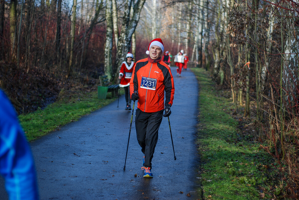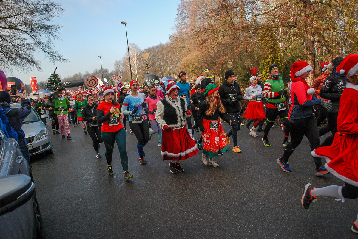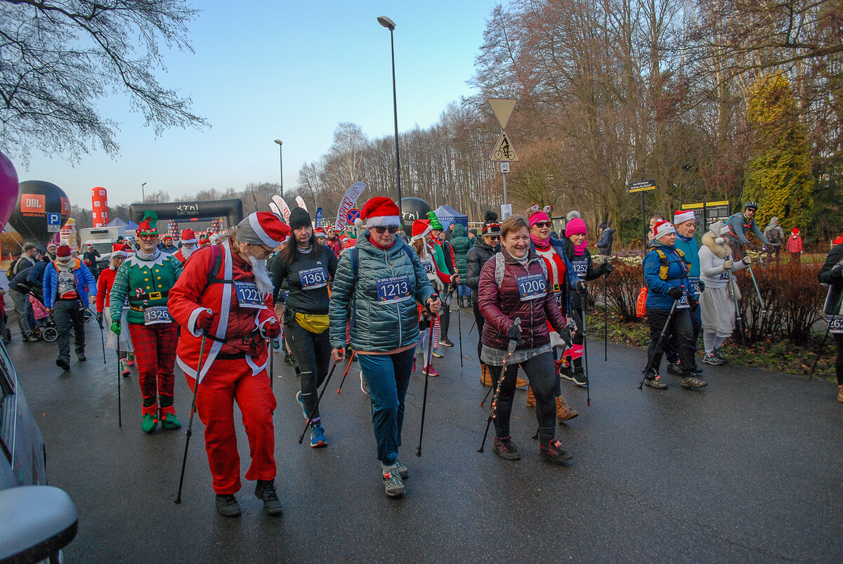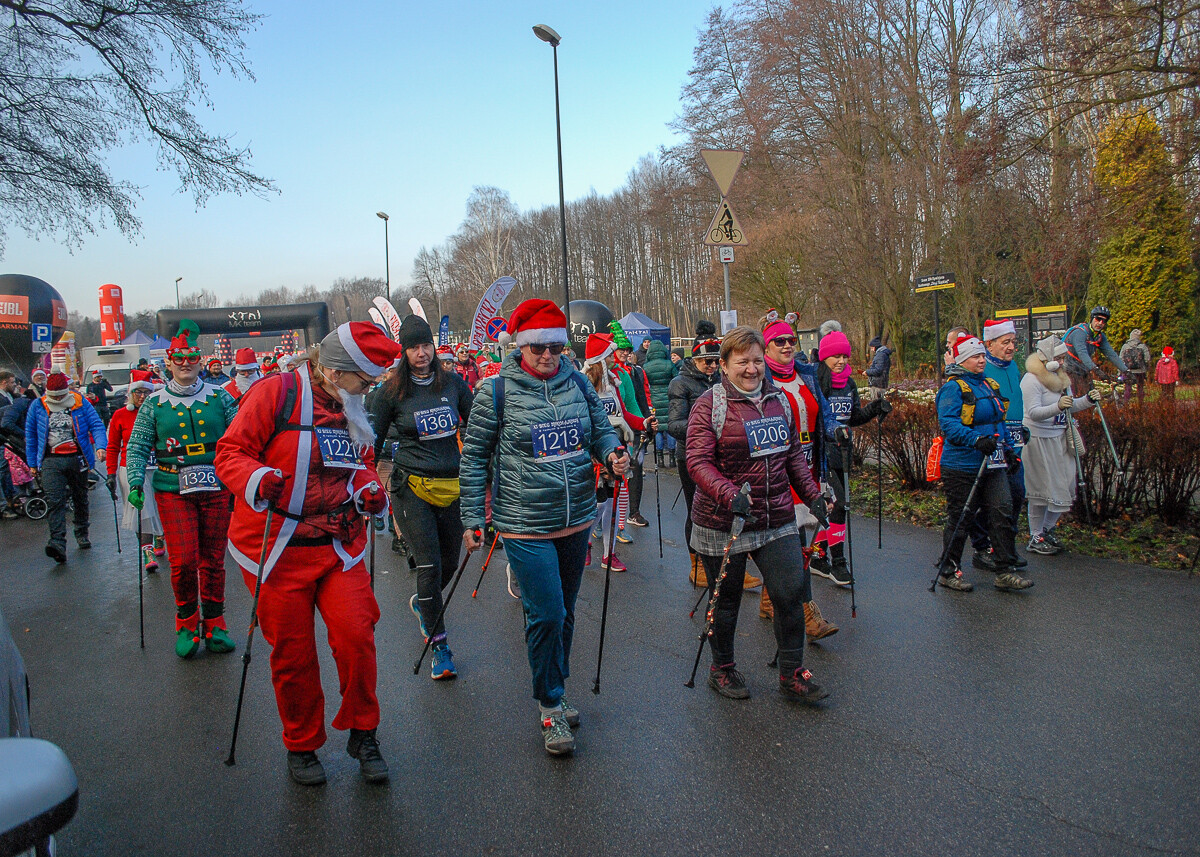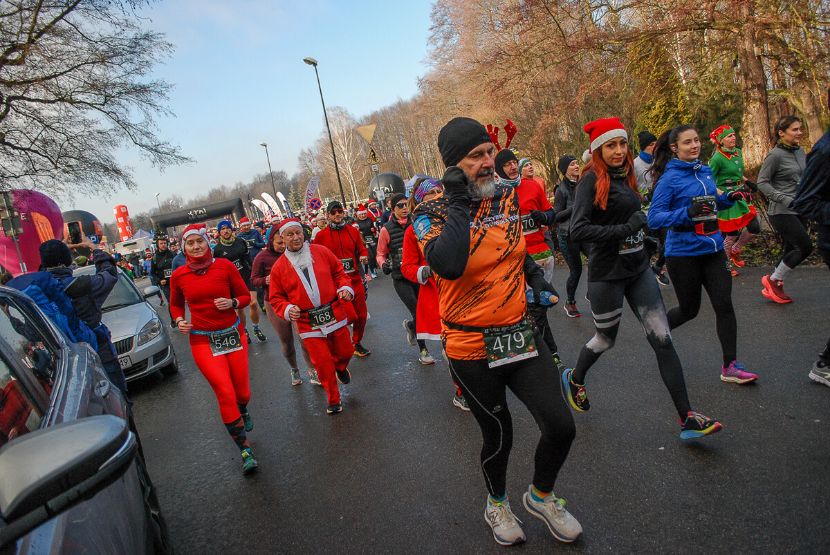 Mniej więcej 800 osób wzięło udział w biegu na 5 km, kilka minut później na trasę wymaszerowało około 200 kijkarzy, zawodników w dyscyplinie nordic walking. Prawie każdy miał na sobie świąteczne akcenty, wielu cały strój Mikołaj, Mikołajki lub Mikołajątka.