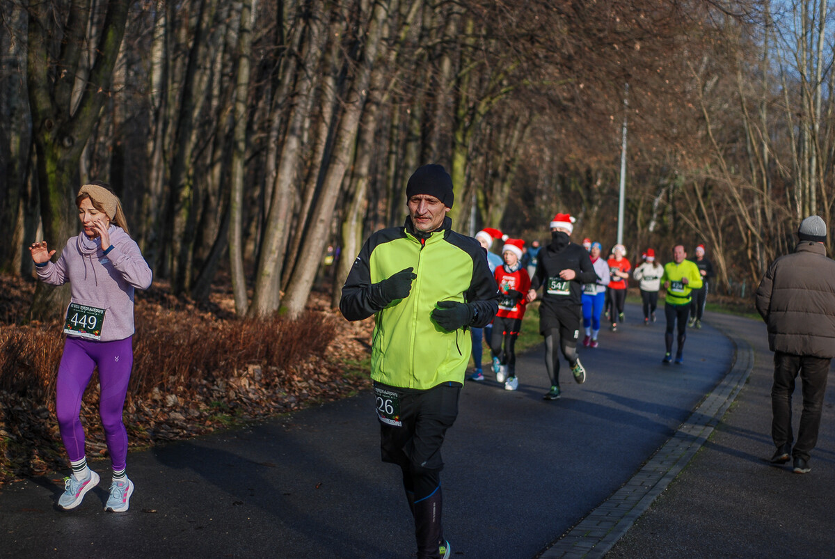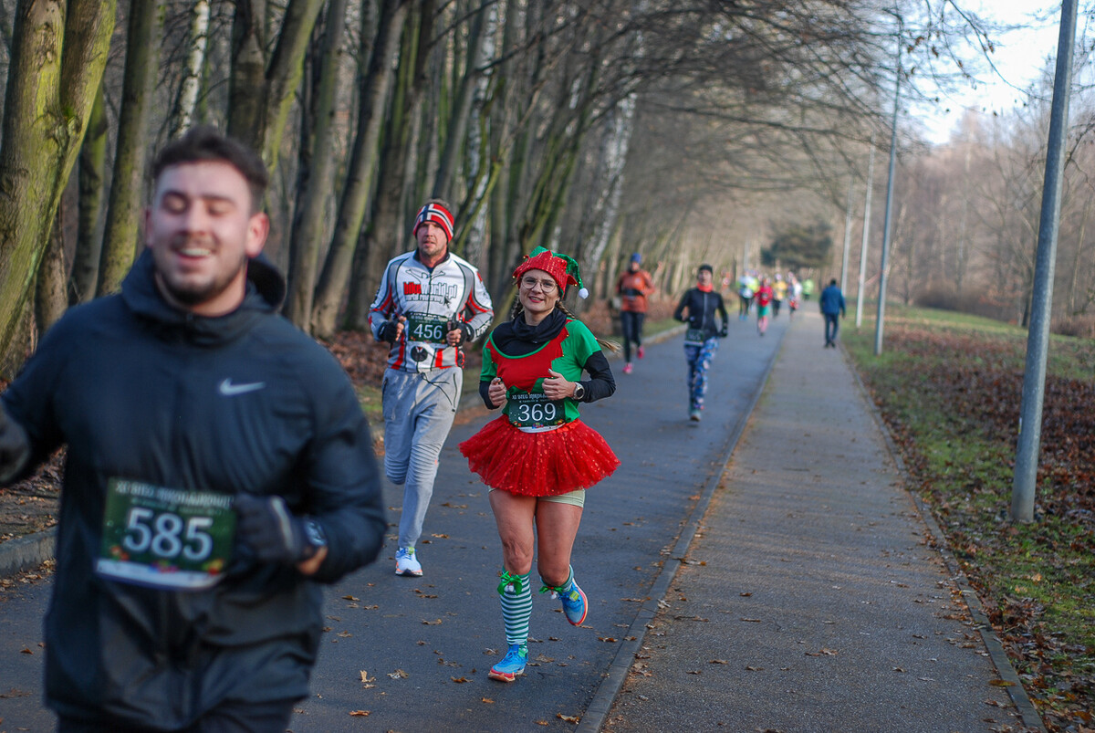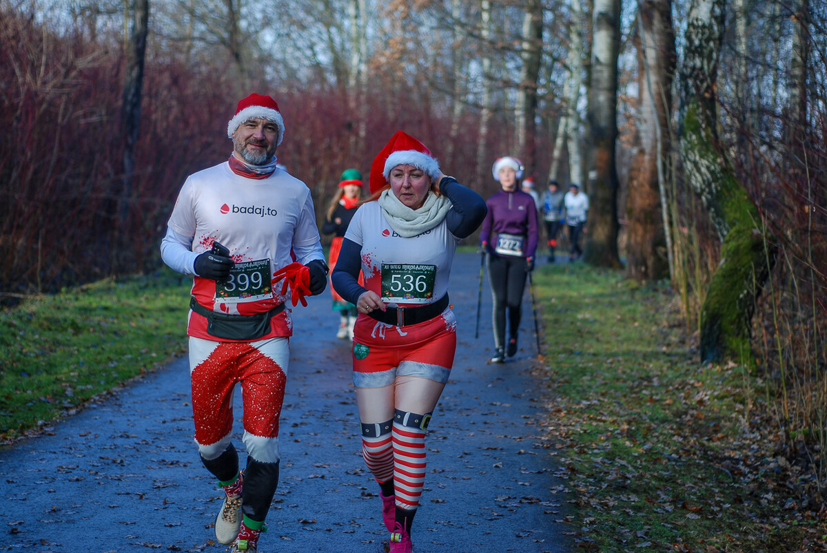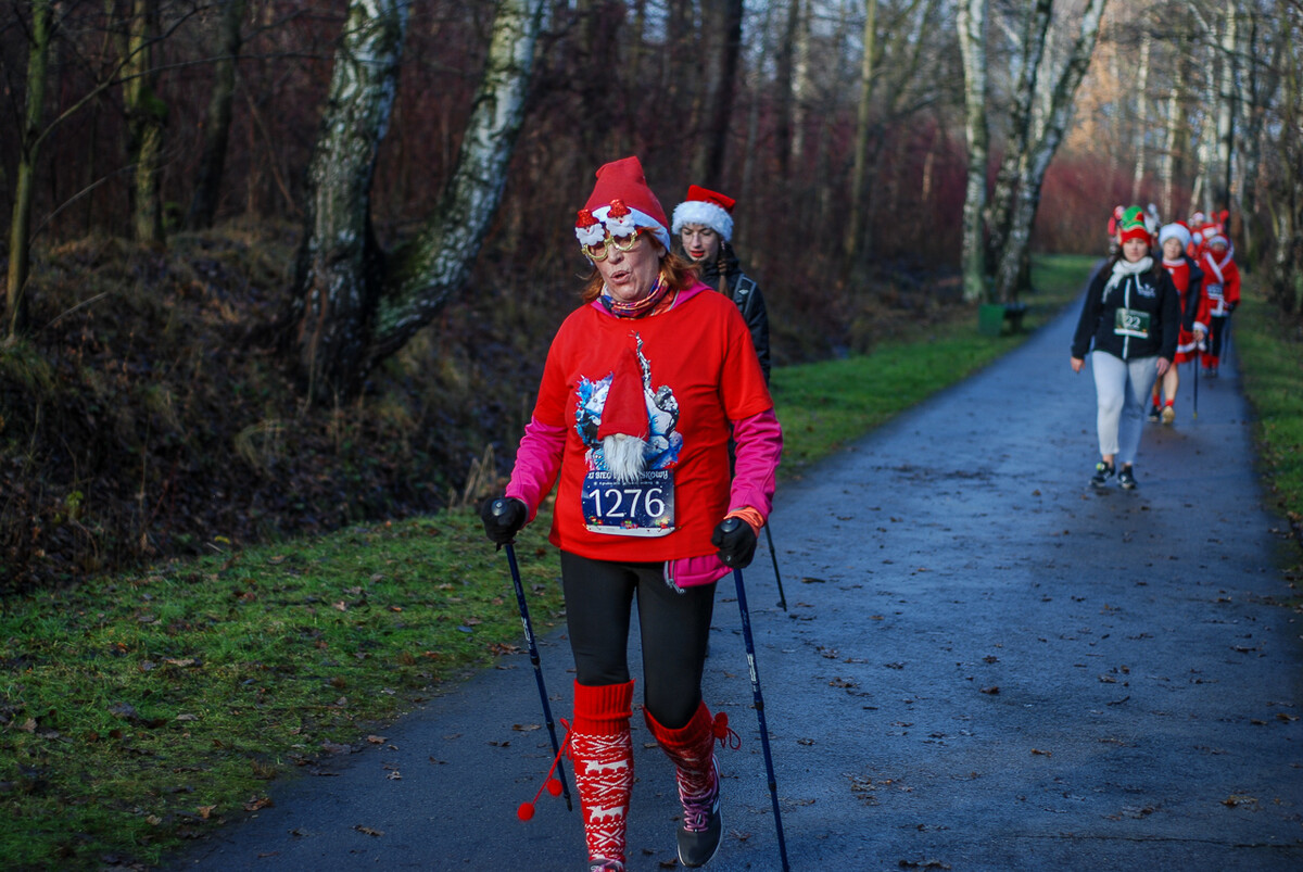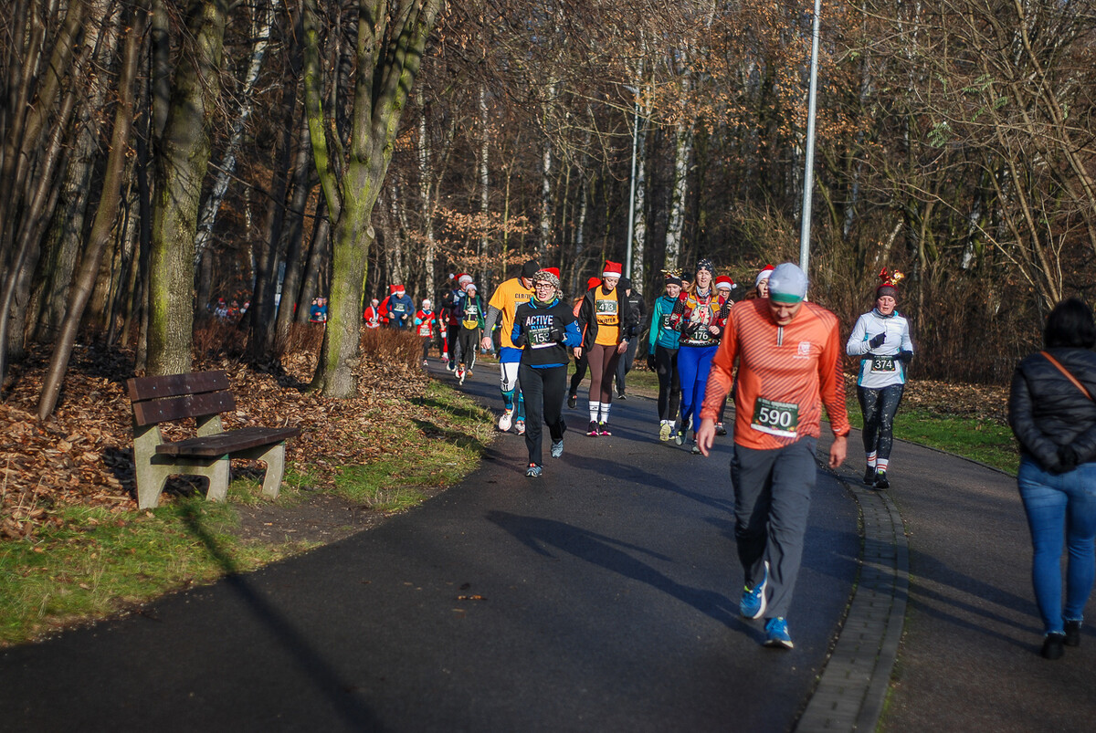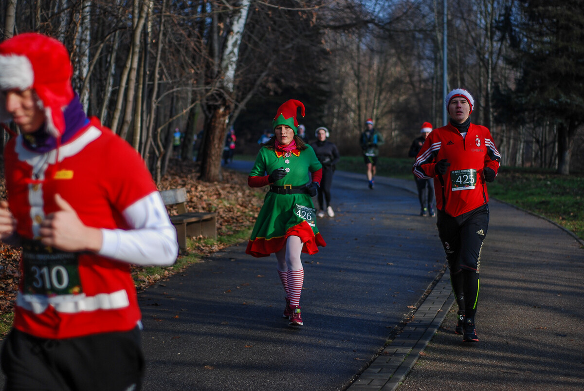 Mniej więcej 800 osób wzięło udział w biegu na 5 km, kilka minut później na trasę wymaszerowało około 200 kijkarzy, zawodników w dyscyplinie nordic walking. Prawie każdy miał na sobie świąteczne akcenty, wielu cały strój Mikołaj, Mikołajki lub Mikołajątka.