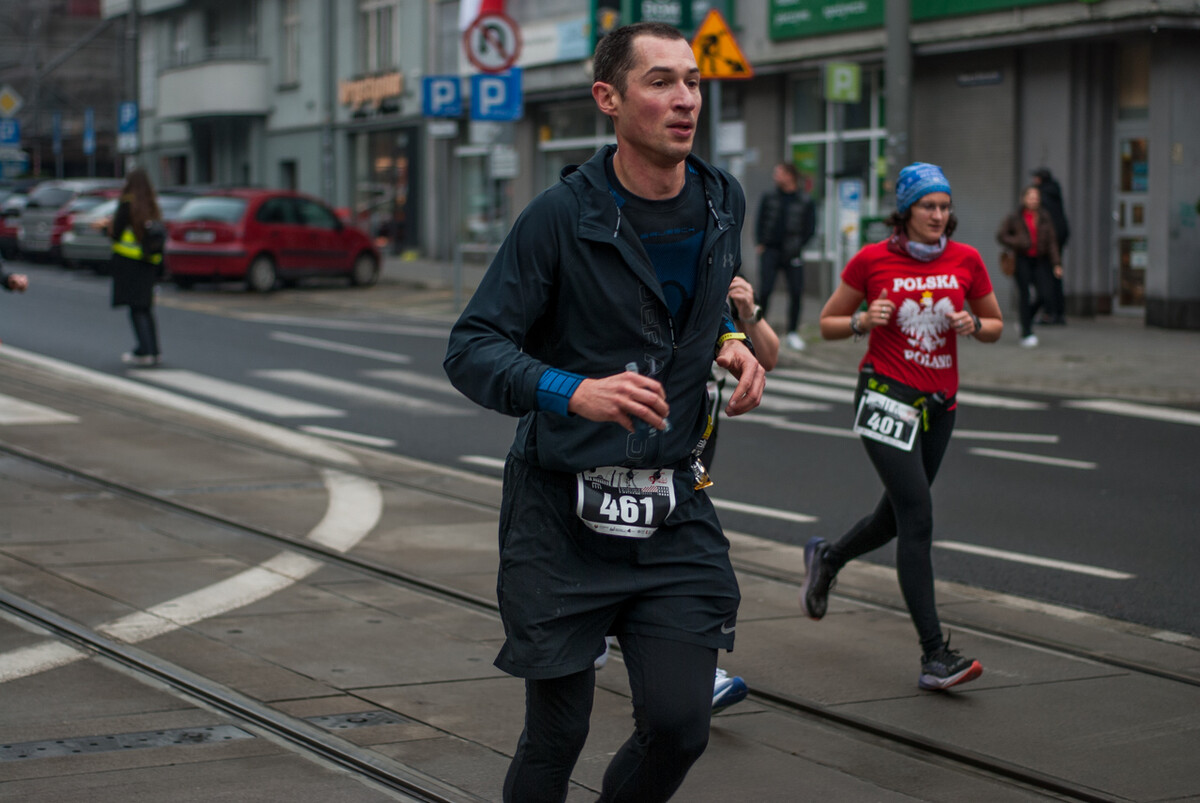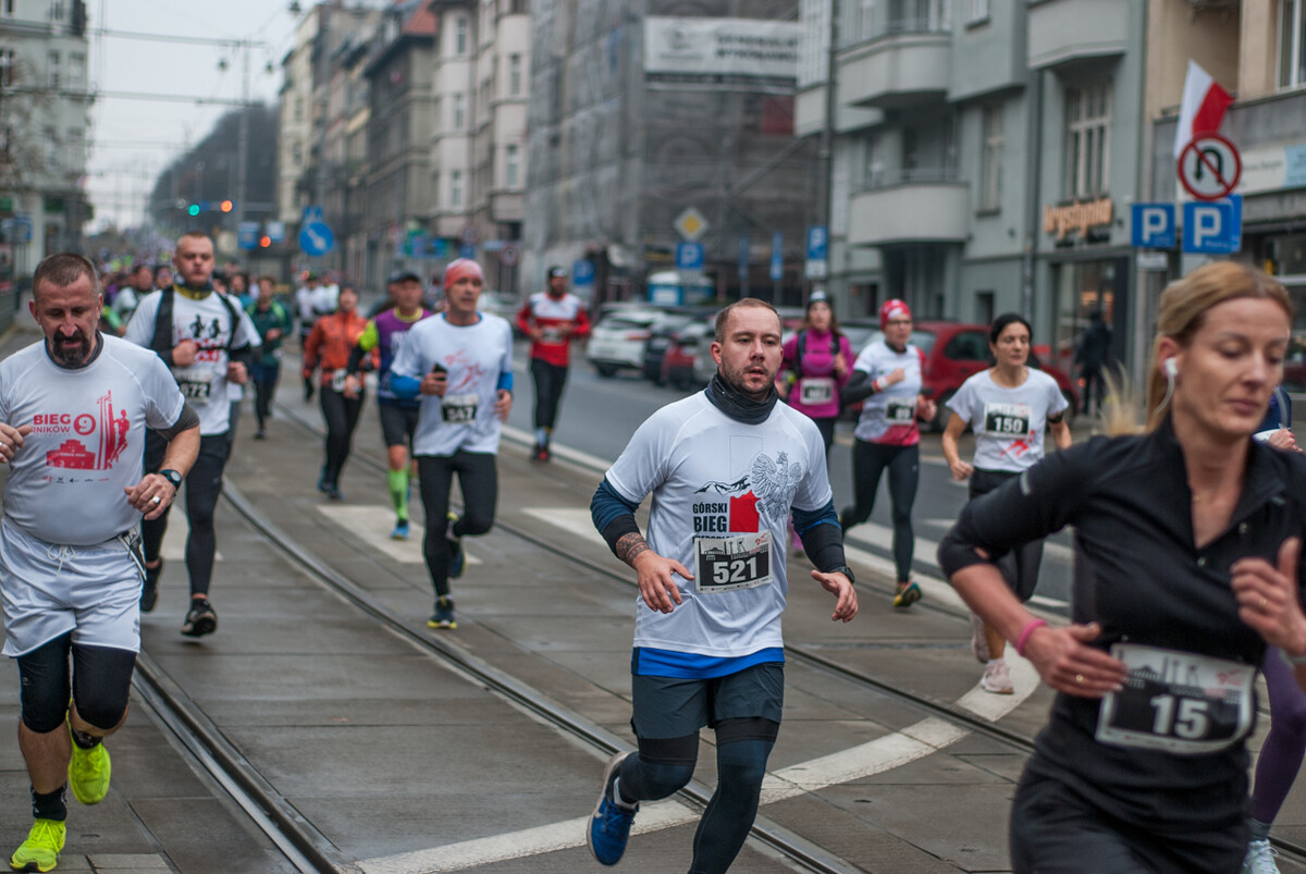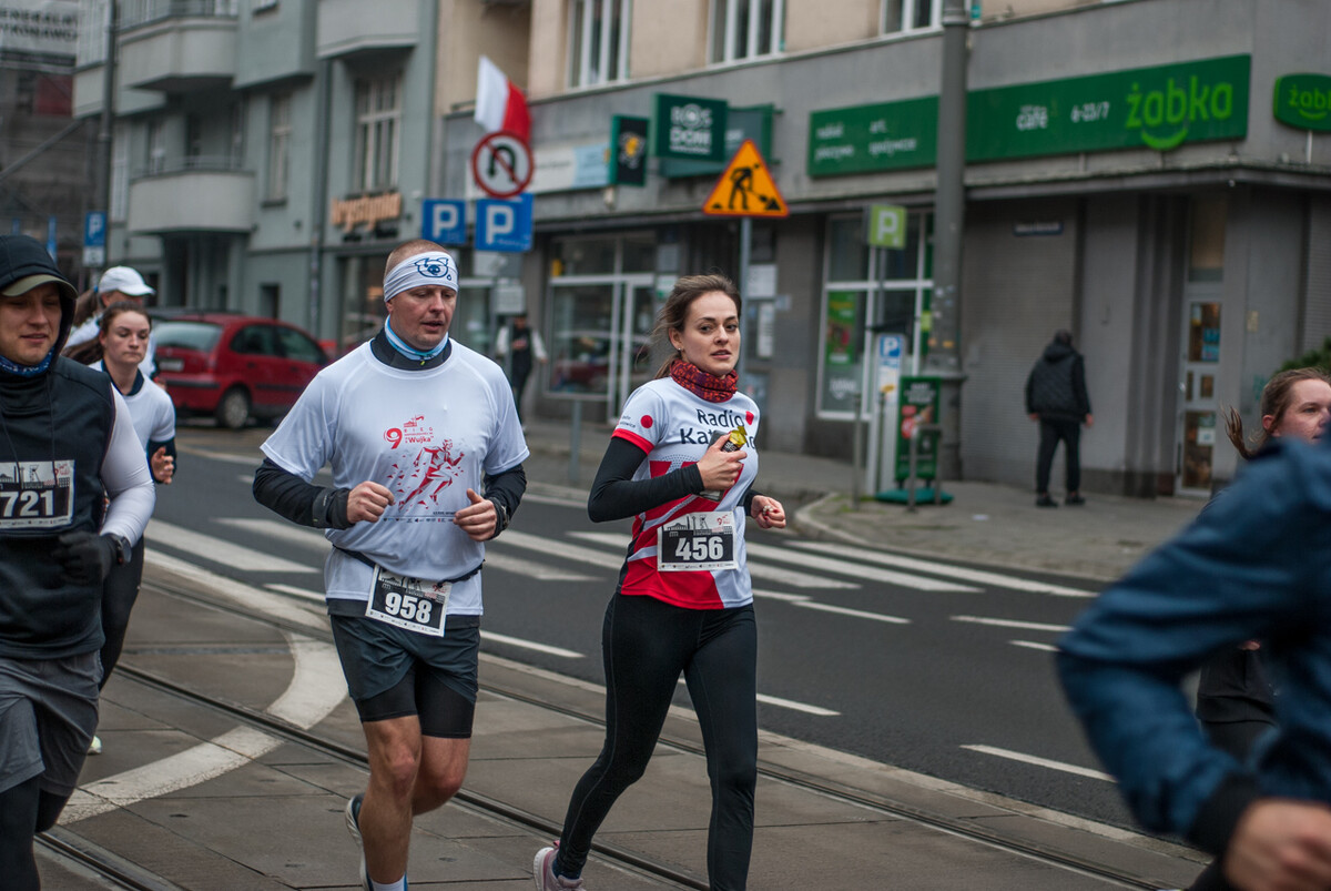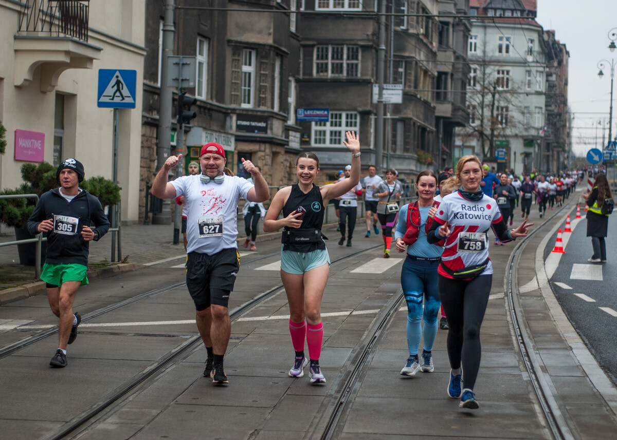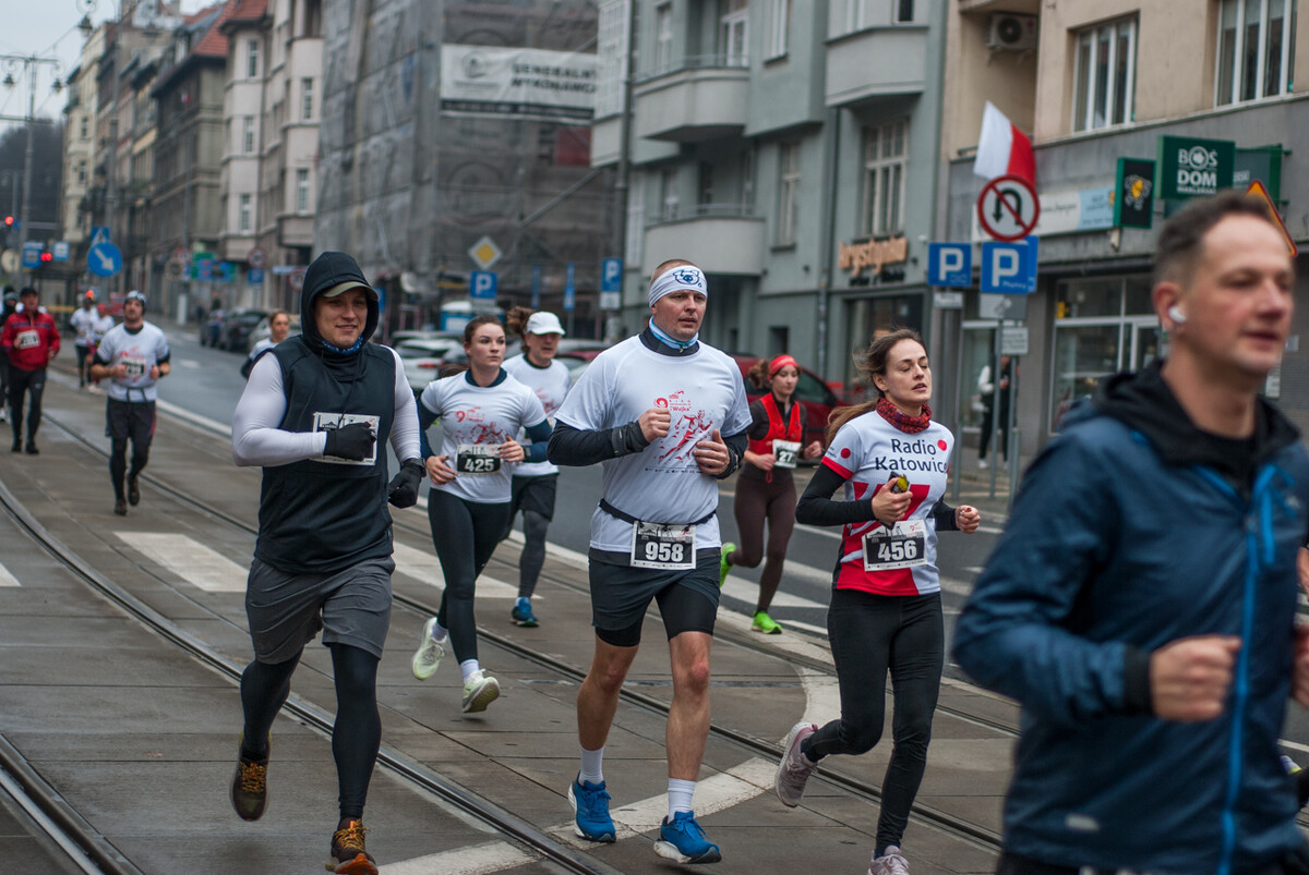 Biegacze wystartowali z punktu umiejscowionego przy Śląskim Centrum Wolności i Solidarności, a trasa biegła między innymi przez Park Kościuszki, ul. Kościuszki, rynek i okolice pomnika Powstańców Śląskich i Spodka (skąd uczestnicy wracali na miejsce startu). My załapaliśmy zawodników na trasie w okolicy placu im. Karola Miarki.