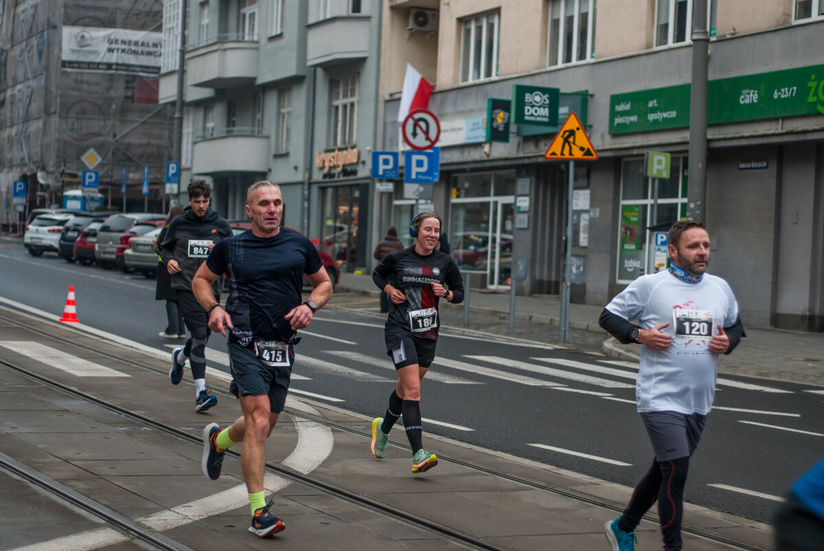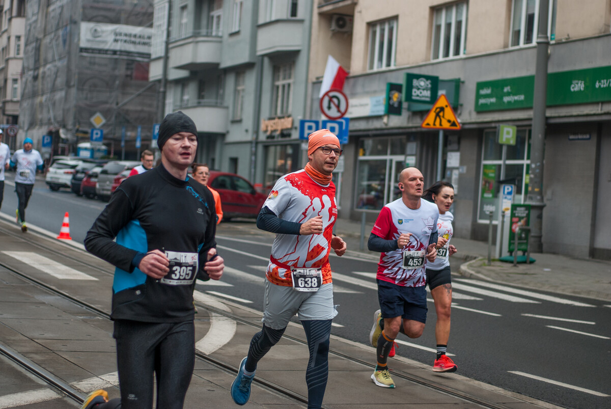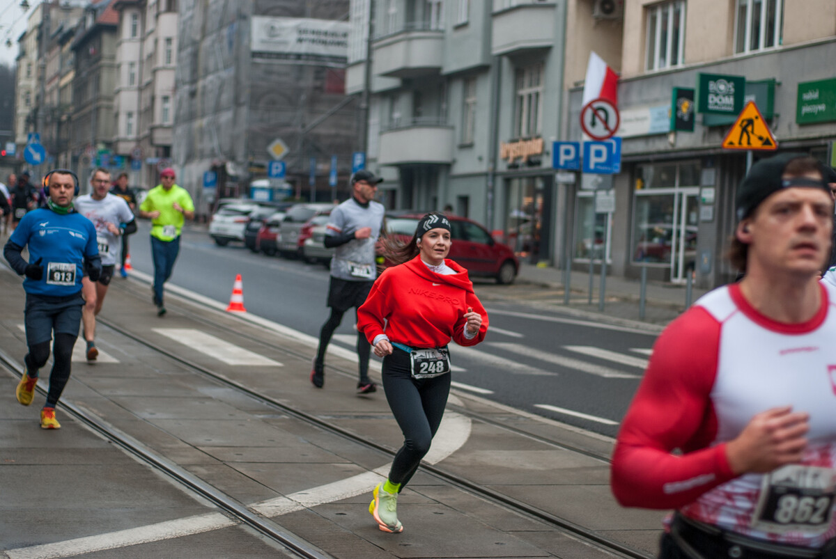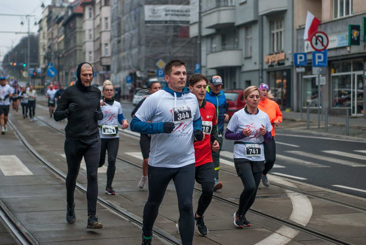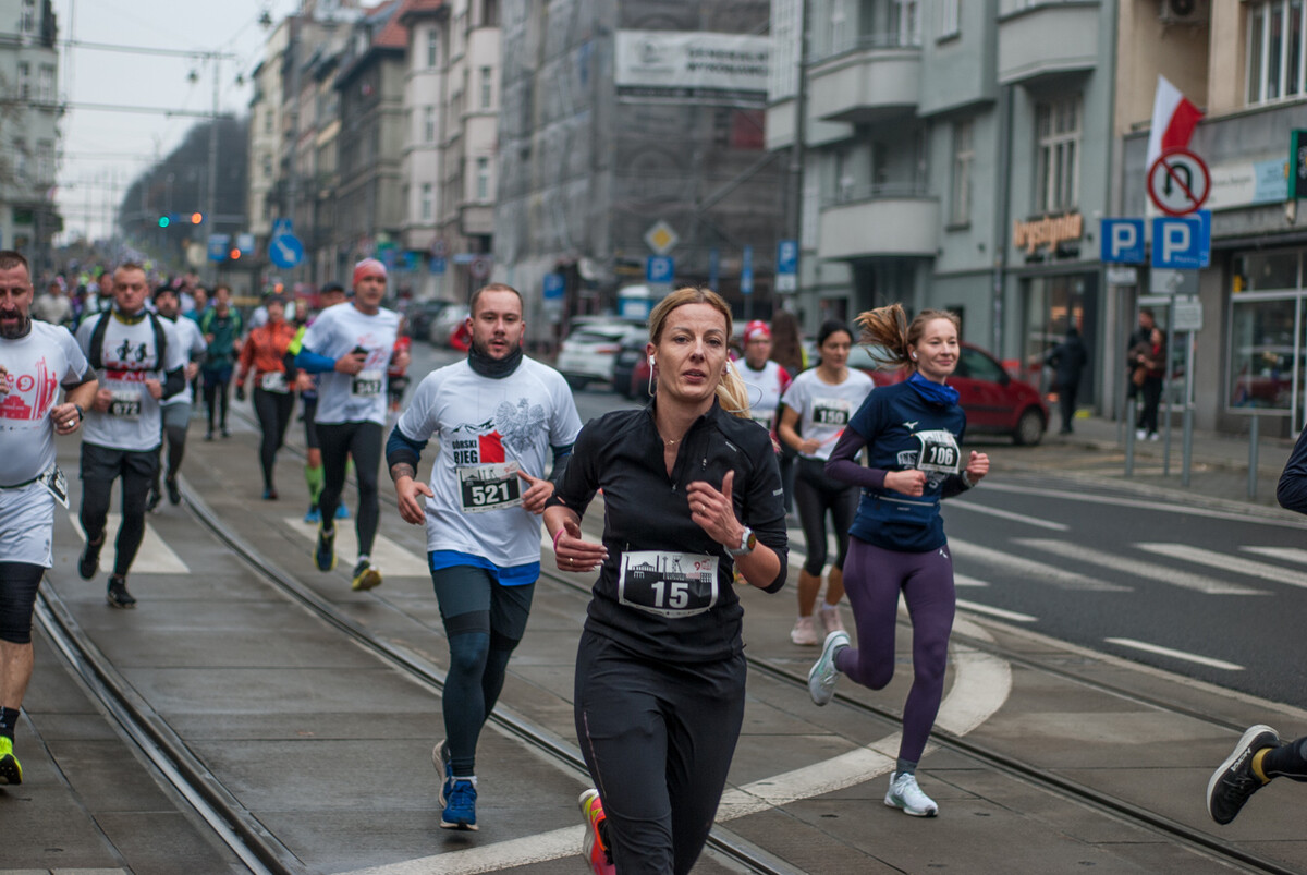 Biegacze wystartowali z punktu umiejscowionego przy Śląskim Centrum Wolności i Solidarności, a trasa biegła między innymi przez Park Kościuszki, ul. Kościuszki, rynek i okolice pomnika Powstańców Śląskich i Spodka (skąd uczestnicy wracali na miejsce startu). My załapaliśmy zawodników na trasie w okolicy placu im. Karola Miarki.