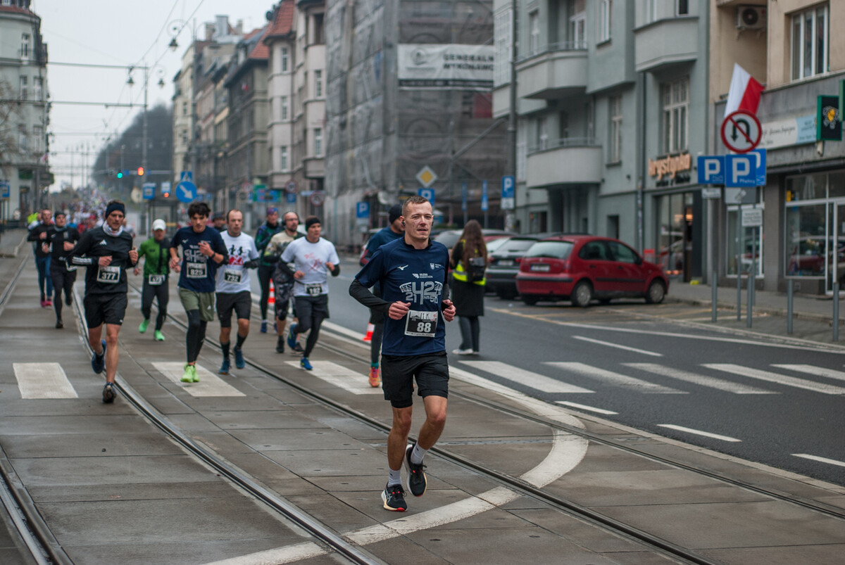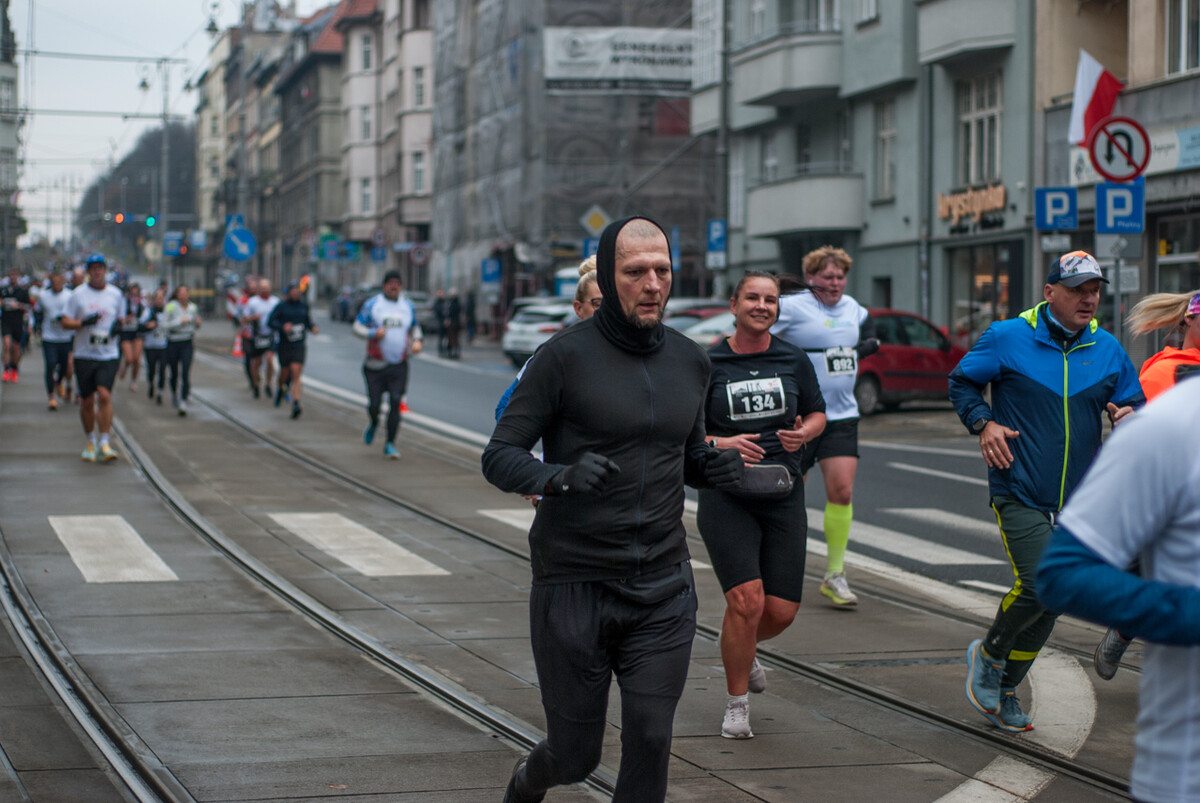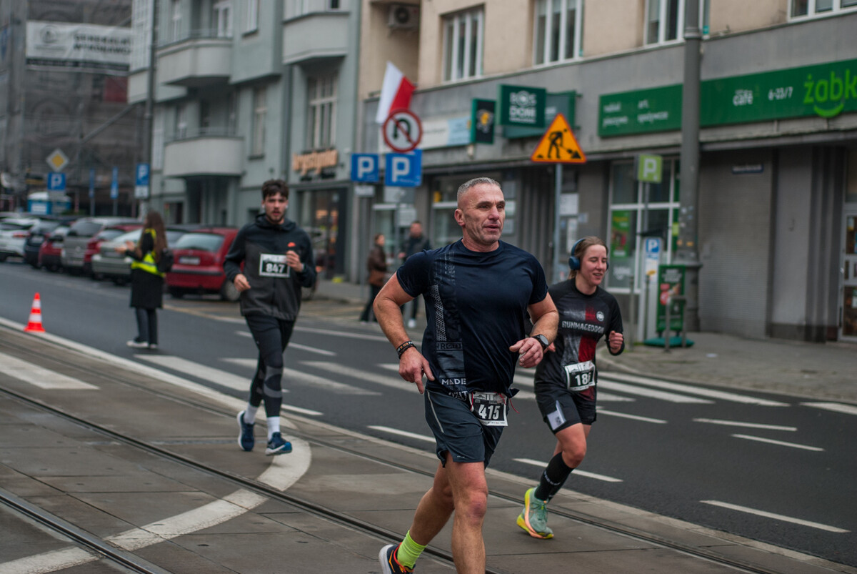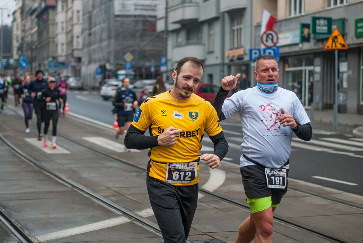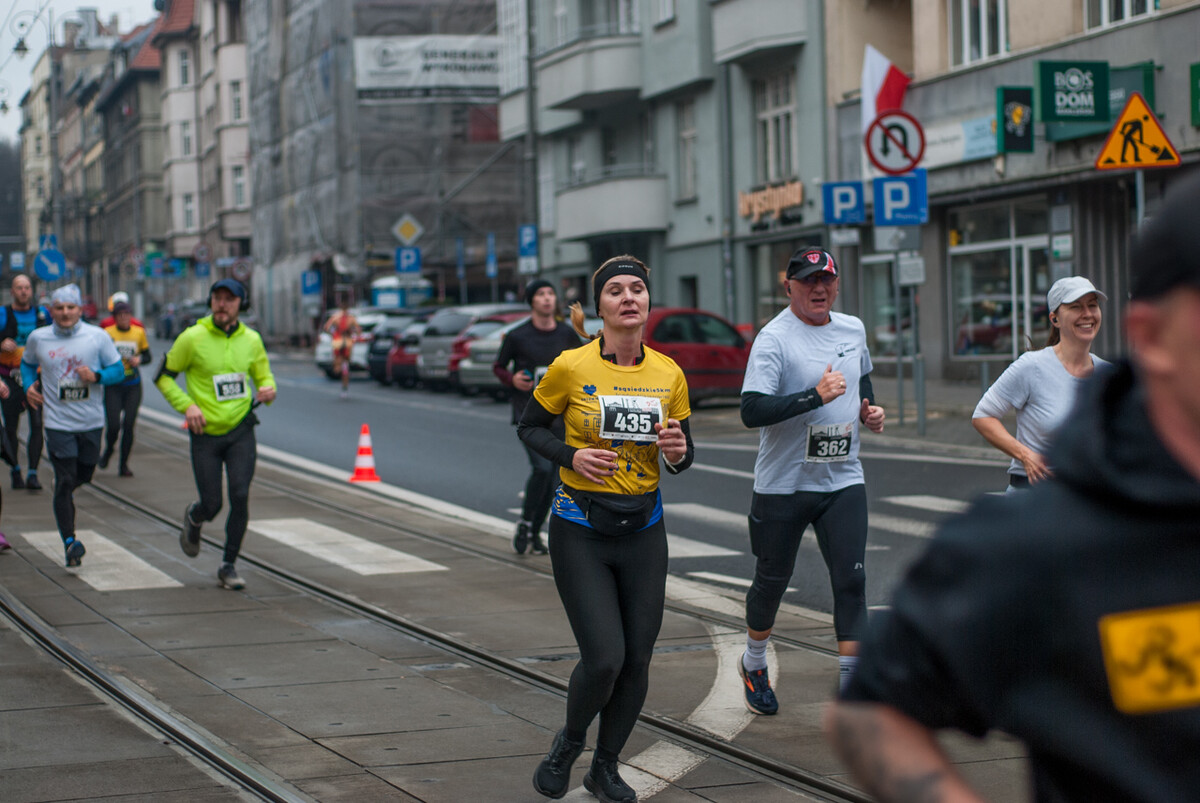 Biegacze wystartowali z punktu umiejscowionego przy Śląskim Centrum Wolności i Solidarności, a trasa biegła między innymi przez Park Kościuszki, ul. Kościuszki, rynek i okolice pomnika Powstańców Śląskich i Spodka (skąd uczestnicy wracali na miejsce startu). My załapaliśmy zawodników na trasie w okolicy placu im. Karola Miarki.