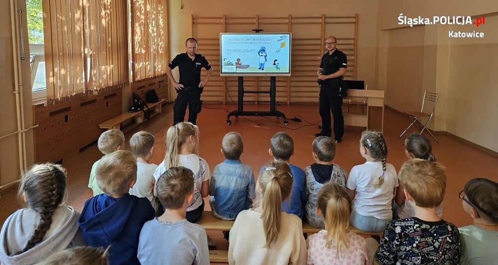 Chociaż od pierwszego szkolnego dzwonka upłynęło już trochę czasu, to dzielnicowi z Komisariatu Policji V w Katowicach nadal biorą udział w spotkaniach z uczniami klas pierwszych szkół podstawowych. Tym razem odwiedzili Szkołę Podstawową Nr 31, 42, 44 i 45 w Katowicach. W ramach działań "Błyskotliwy pierwszak, czyli bezpieczna droga do szkoły” uczą pierwszoklasistów m.in. przepisów ruchu drogowego i bezpiecznego przechodzenia przez jezdnię.