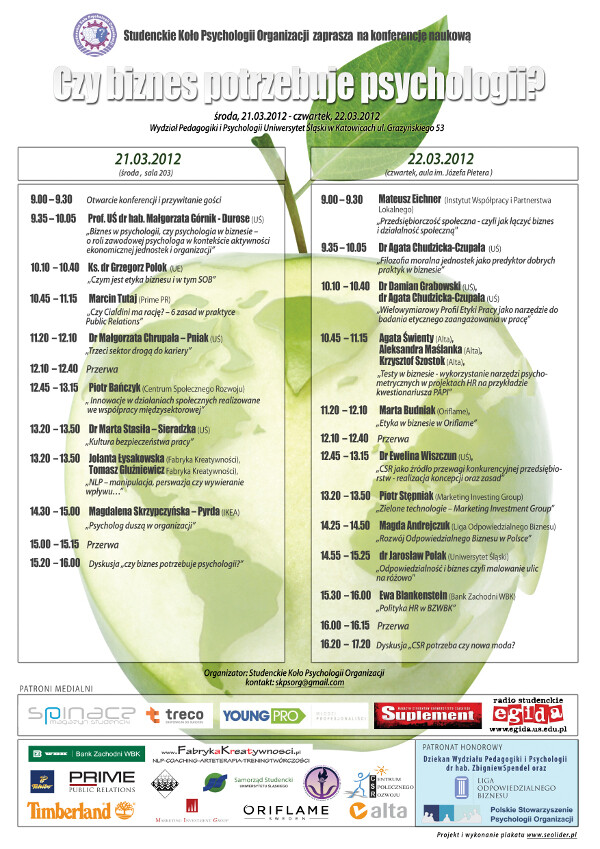 Studenckie Koło Psychologii Organizacji zaprasza na konferencję "Czy biznes potrzebuje psychologii?".