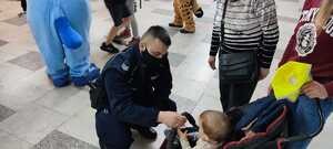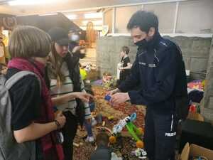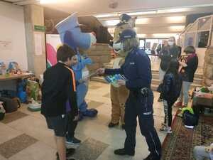 Chwila nieuwagi może spowodować, że malec się zgubi, zwłaszcza w nowym, zatłoczonym miejscu. Dlatego też, dbając o bezpieczeństwo najmłodszych - ukraińskich i polskich dzieci - katowiccy policjanci zaprosili do współpracy podczas kampanii „Mamo, Tato nie zgub mnie” strażników miejskich, którzy wspólnie z policyjnymi profilaktykami i dzielnicowymi odwiedzają miejsca, gdzie przebywają nas sąsiedzi z Ukrainy. Stróżom prawa towarzyszył policyjny Sznupek i Rysiu ze straży miejskiej. Maskotki mundurowych bardzo ucieszyły dzieci, które oczekiwały z rodzicami na dalszą podróż. Strażacy każdemu dziecku wręczali opaski odblaskowe i zawieszki, które wpływają na bezpieczeństwo pieszych zwłaszcza po zmroku, jak również w trudnych warunkach pogodowych.