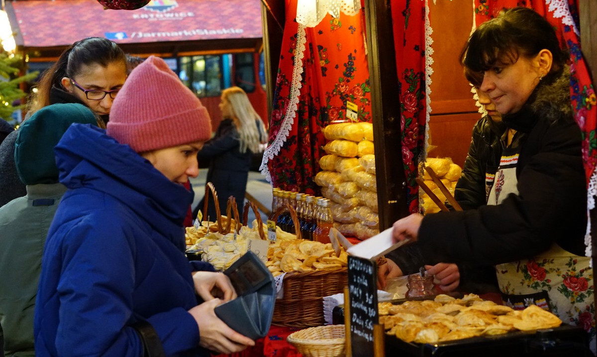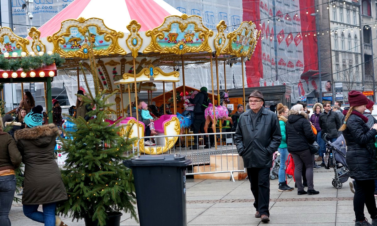 W niedzielne popołudnie na miejskim rynku dosłownie nie można było wsadzić szpilki – tylu mieszkańców Katowic, ale także miast całej aglomeracji korzystających z ostatniego dnia Black Weekendu ściągnęło do centrum, by zobaczyć, jak w tym roku miasto przygotowało się na Święta Bożego Narodzenia. Na rynku tradycyjnie stanęła karuzela z konikami, oblegana przez najmłodszych i ich rodziców, bajkowy pociąg, a także wykonana ze słomy szopka. Wśród drewnianych kramów mogliśmy znaleźć tradycyjne wędliny i sery, wino, słodycze, ciasta, pierniki, ale także ciekawe propozycje na świąteczne prezenty, w tym biżuterię, ubrania, kosmetyki. Nie zabrakło także ręcznie wykonanych bożonarodzeniowych ozdób. Nas szczególnie zainteresowały misternie ozdobione bombki choinkowe, a także miniaturowe figurki do wyposażenia szopki.