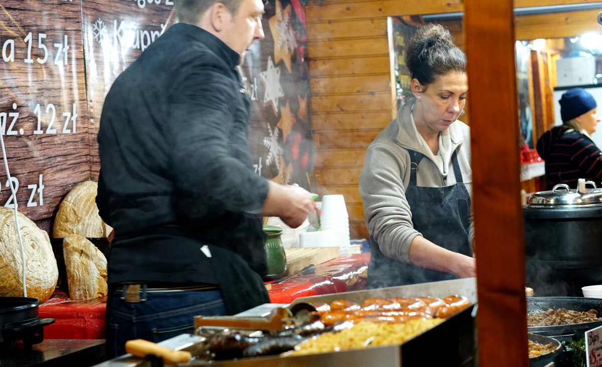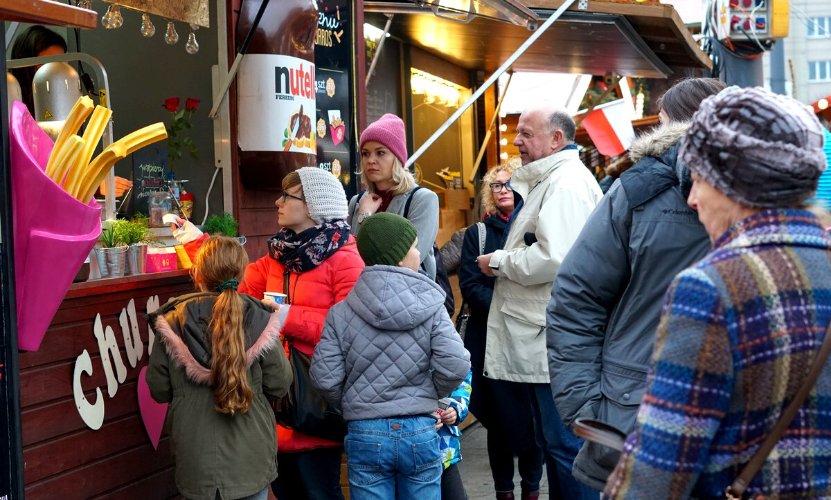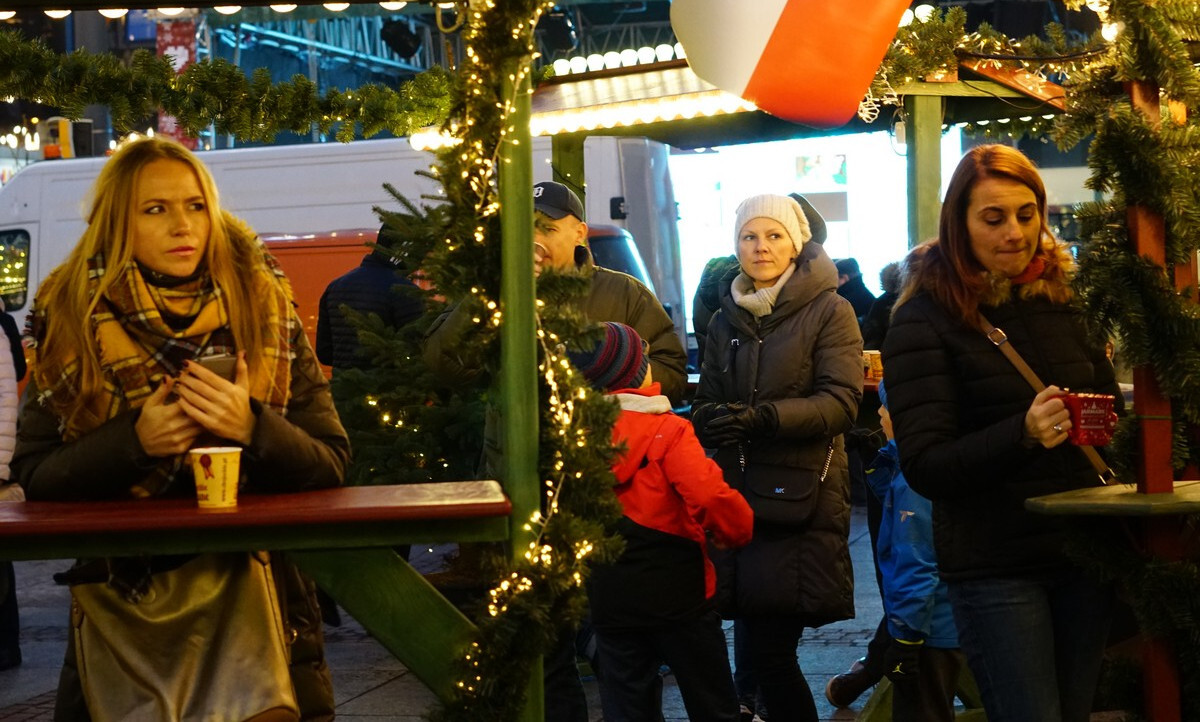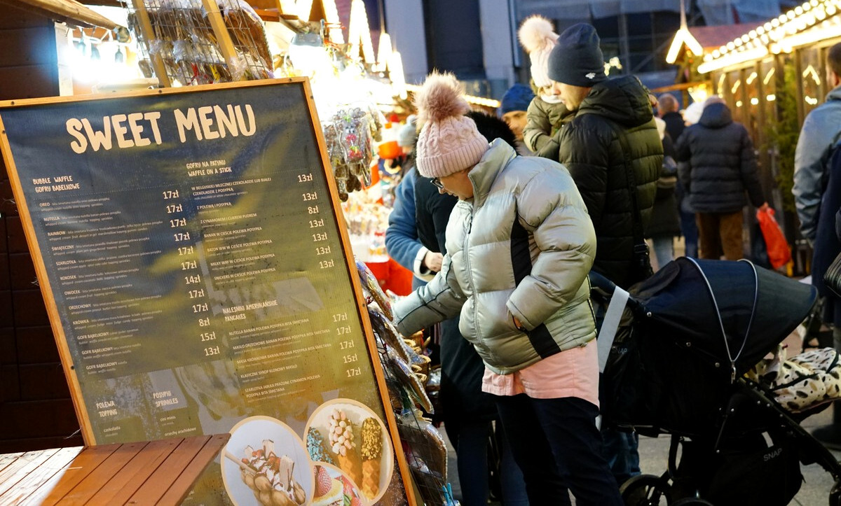 Po zakupach można było uraczyć się pysznościami przyrządzanymi w ustawionych na rynku foodtruckach, gdzie znaleźliśmy wiele typowych dla świąt przysmaków. Odwiedzający raczyli się także gorącą czekoladą, kawą i miodami pitnymi w okolicznościowych kamionkowych kubeczkach w kształcie lokomotywy.