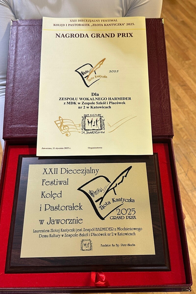 11 stycznia 2025 roku w Jaworznie odbył się koncert galowy XXII Diecezjalnego Festiwalu Kolęd i Pastorałek „Złota Kantyczka”. Podczas wydarzenia ogłoszono zwycięzców tegorocznej edycji, a najwyższe wyróżnienie – Grand Prix Festiwalu – Złotą Kantyczkę – trafiło do zespołu HARMIDER ze Studia Piosenki pod kierunkiem Aleksandry Stano.