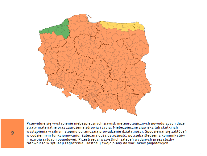 IMGW wydało ostrzeżenie przed upałami dla niemal całego kraju. Przewidywana temperatura maksymalna na Śląsku ma sięgać 30-32 stopni. Ponadto prognozuje się wystąpienia burz z gradem.
