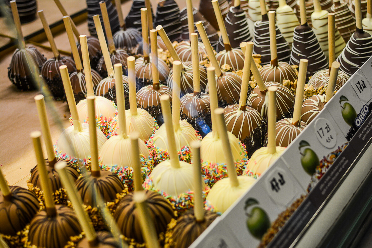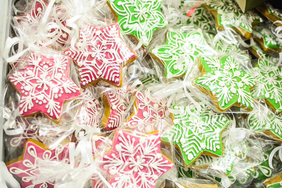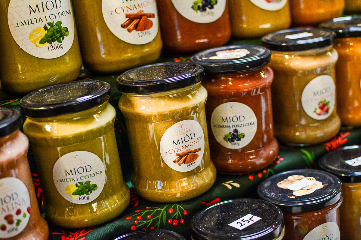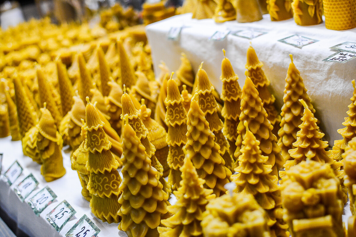 Na samej płycie rynku znajdziemy kilkadziesiąt budek z świątecznymi cukierkami, owocami w czekoladzie, chałwą, przetworami i wiejskimi produktami, nalewkami czy ciepłymi przekąskami (królują oscypki, bigos i kiełbaski). No i oczywiście grzaniec w kilku odsłonach, po który zwykle stoją kolejki. Do tego dochodzi cała masa wzorzystych skarpet, czapek i bucików, zabawki i bibeloty, czyli wszystko to, co małe, kolorowe i cieszące oko.