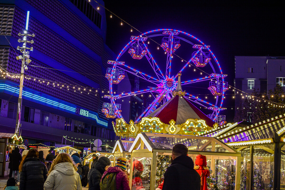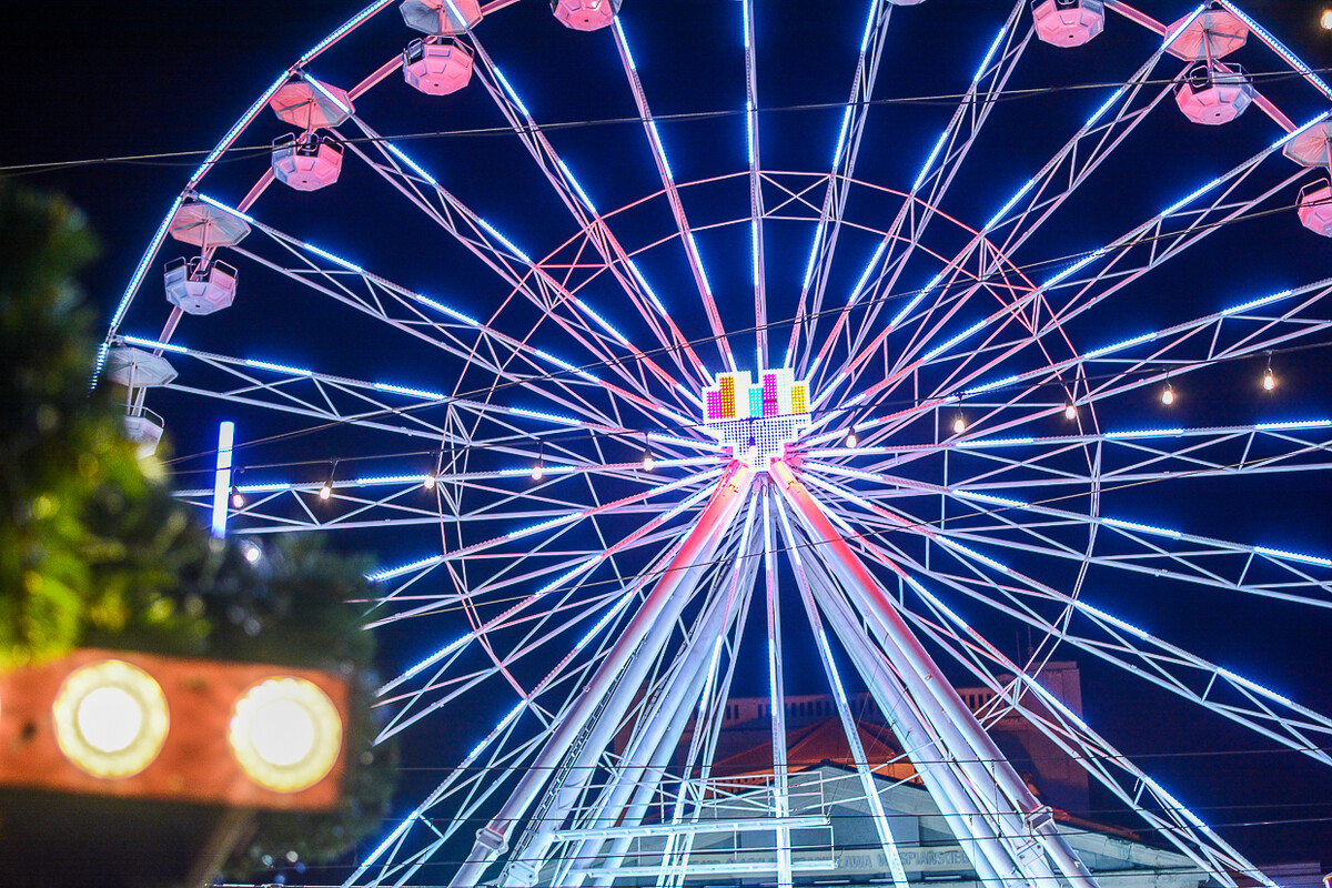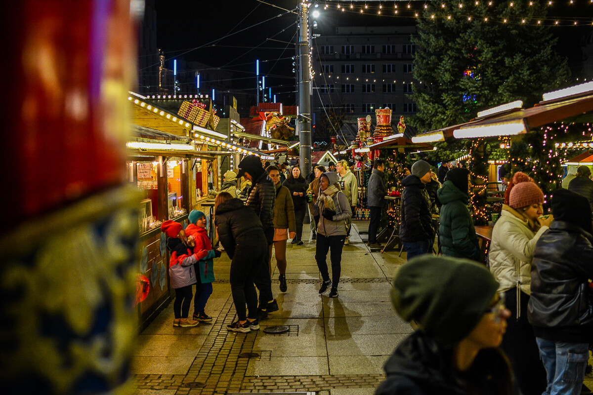 Łunę świateł widać już od Spodka lub ulicy Warszawskiej. W tym roku jarmark jest spory, zajął nie tylko większą część rynku, ale i duży skrawek placu przy sztucznej Rawie oraz Teatrze Śląskim. Są aż dwa diabelskie młyny i duża karuzela.