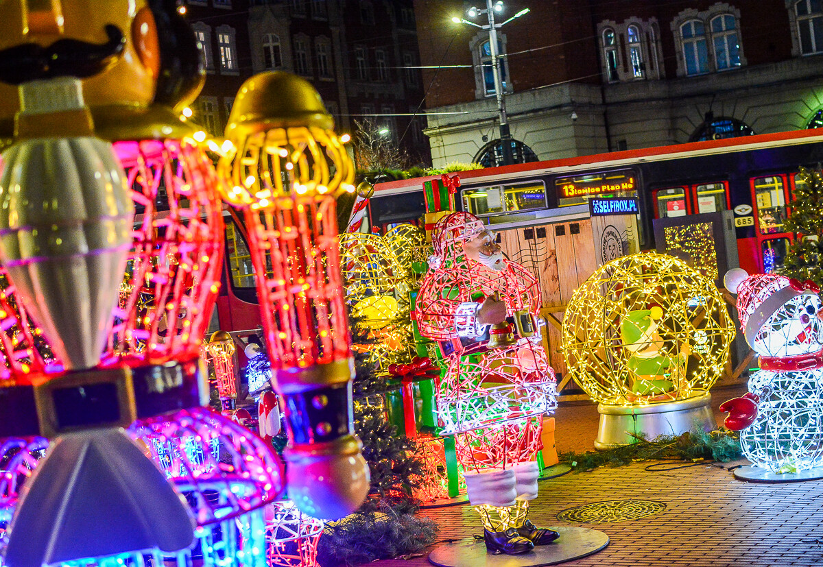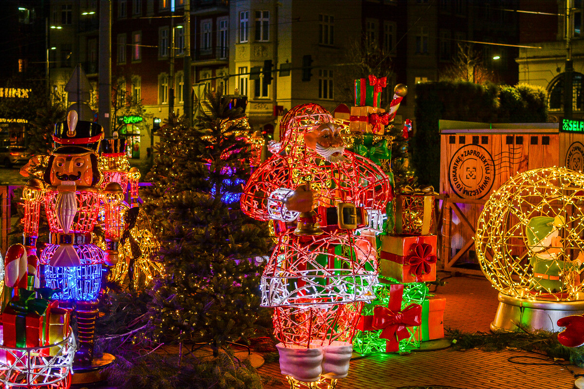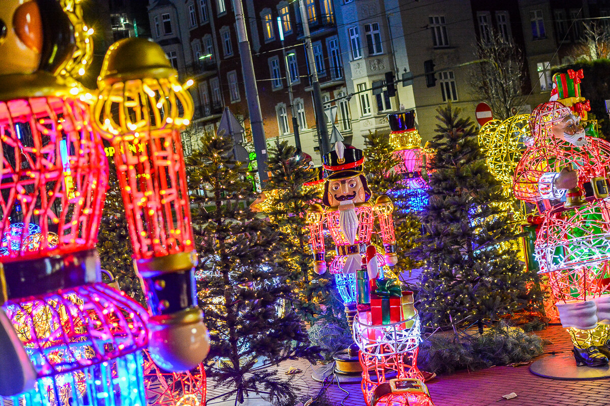 Przechodniów kuszą neony, kolorowe rzeźby świąteczne i mnóstwo grających domków, z postaciami z bajek, które śpiewają i tańczą przy wtórze kolęd.
