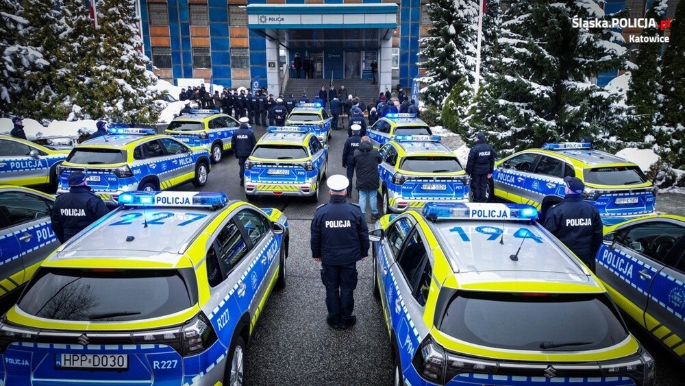 Wczoraj przed Komendą Wojewódzką Policji w Katowicach uroczyście przekazano 32 nowe radiowozy w nowym oznakowaniu z napędem hybrydowym marki Suzuki S-Cross. Aż 4 z nich trafiły do katowickiej komendy.