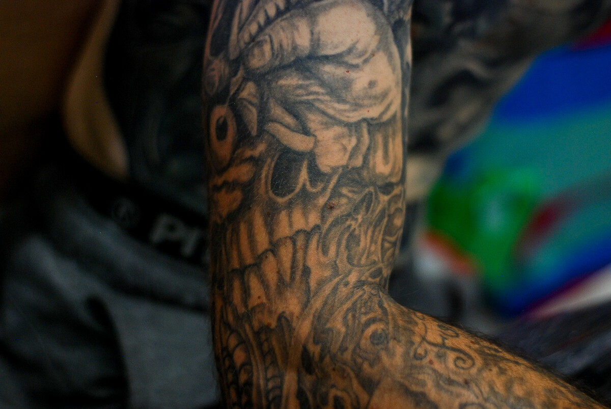 Jest luz, to moja dziesiąta dziara. Akurat w tym miejscu nie boli jakoś specjalnie - odpowiedział nam na pytanie o wrażenia jeden z tatuowanych, który wydawał się drzemać podczas pracy tatuatora.