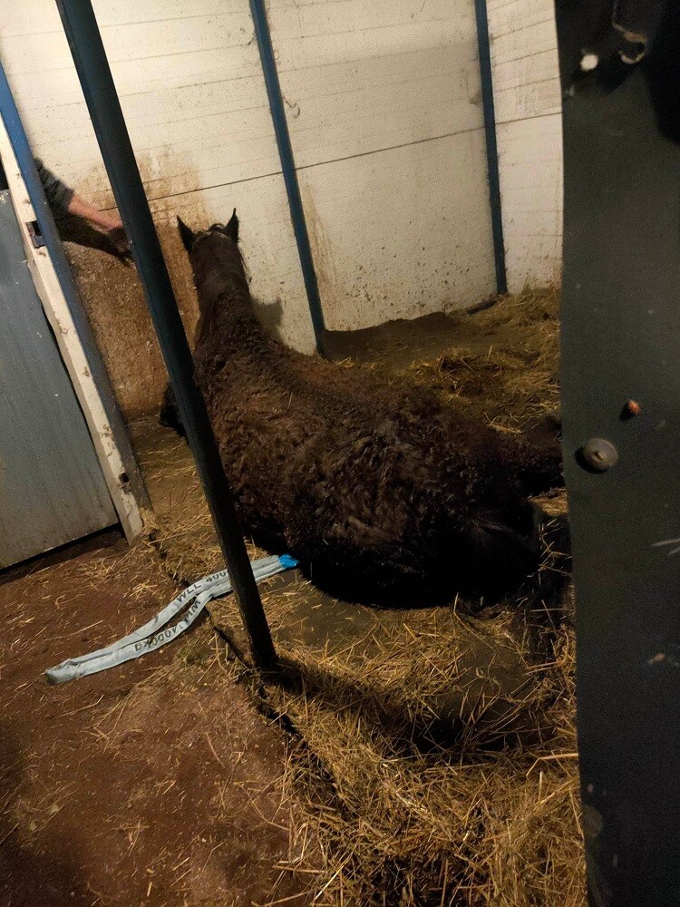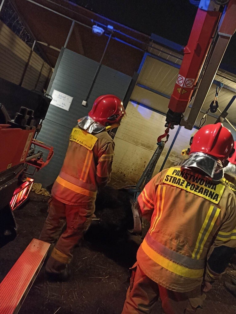 Kiedy strażacy dotarli na miejsce, ustalono, że schorowany koń nie ma siły wstać. Jego właściciele poprosili przedstawicieli OSP o pomoc, a ci bez wahania przystąpili do działania.