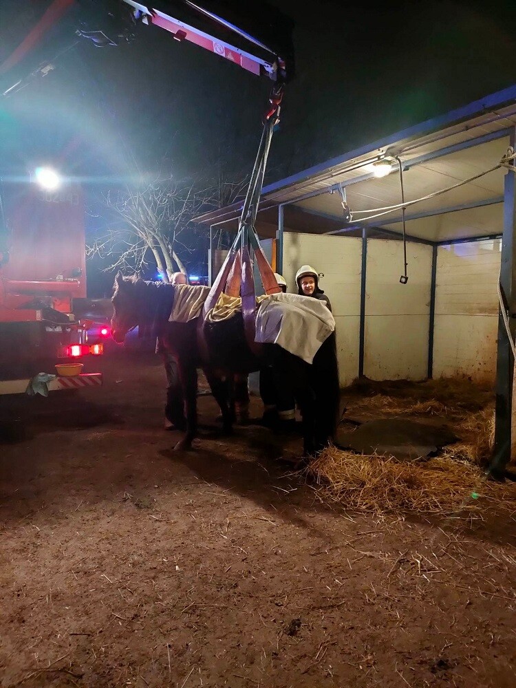 - Uznano, że najlepszym sposobem będzie użycie HDS-a i KDR poprosił o zadysponowanie Ciężkiego Samochodu Ratownictwa Technicznego z JRG 2 Katowice. W efekcie konia udało się postawić i pod opieką właścicieli i weterynarza nabiera sił – informują strażacy z Ochotniczej Straży Pożarnej w Katowicach – Szopienicach.