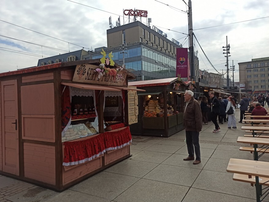 Podczas wielkanocnego jarmarku swoje towary oferują wystawcy z całej Polski, ale też z Węgier i Turcji. Na stoiskach znajdziemy m.in. pisanki wykonywane różnymi ludowymi technikami, stroiki, wiosenne wianki, bukszpany, palmy, rzeźbione świece oraz koszyczki – mówi Marcin Krupa, prezydent Katowic.