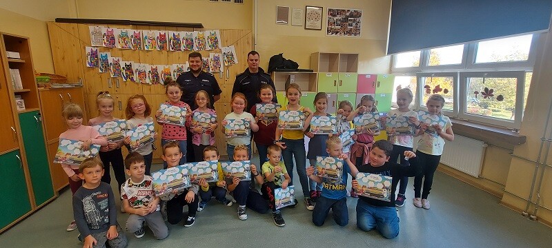 Po przeprowadzonych zajęciach przy wykorzystaniu prezentacji multimedialnej funkcjonariusze policji zaangażowali dzieci w praktyczne ćwiczenia poza placówką edukacyjną. Pierwszoklasiści pod czujnym okiem policjantów bezpiecznie przechodzili przez jezdnię, dzięki czemu utrwalali sobie zdobytą wcześniej wiedzę. Na zakończenie stróże prawa przekazali najmłodszym plany lekcji oraz elementy odblaskowe, podkreślając jak ważne dla bezpieczeństwa jest ich noszenie, szczególnie teraz - w okresie jesiennym.