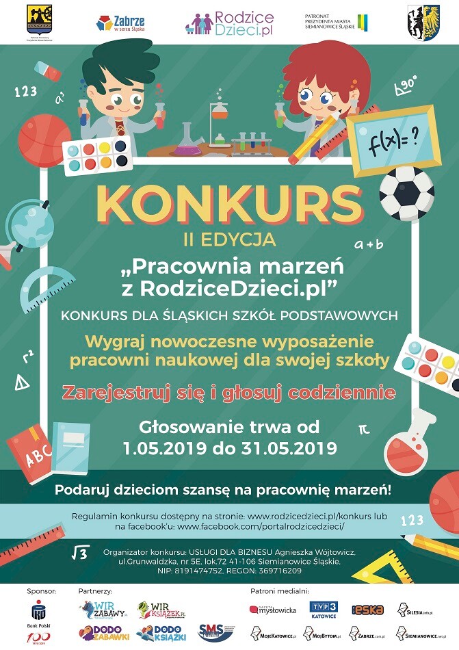 Od 10 kwietnia do ostatniego dnia miesiąca można zgłaszać szkoły podstawowe z województwa śląskiego do konkursu „Pracownia marzeń z RodziceDzieci.pl”.