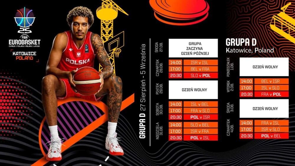 Terminarz spotkań reprezentacji Polski podczas EuroBasketu 2025 w Katowicach: