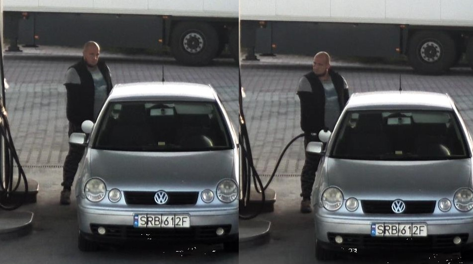 Podejrzewany mężczyzna zatankował paliwo za ponad 250 zł i odjechał, nie płacąc za nie. Podejrzewany poruszał się srebrnym samochodem marki Volkswagen Polo z tablicą rejestracyjną o numerze SRB612F, nieprzypisaną do pojazdu, na którym ją umieszczono. Wizerunek podejrzewanego mężczyzny zarejestrował monitoring.