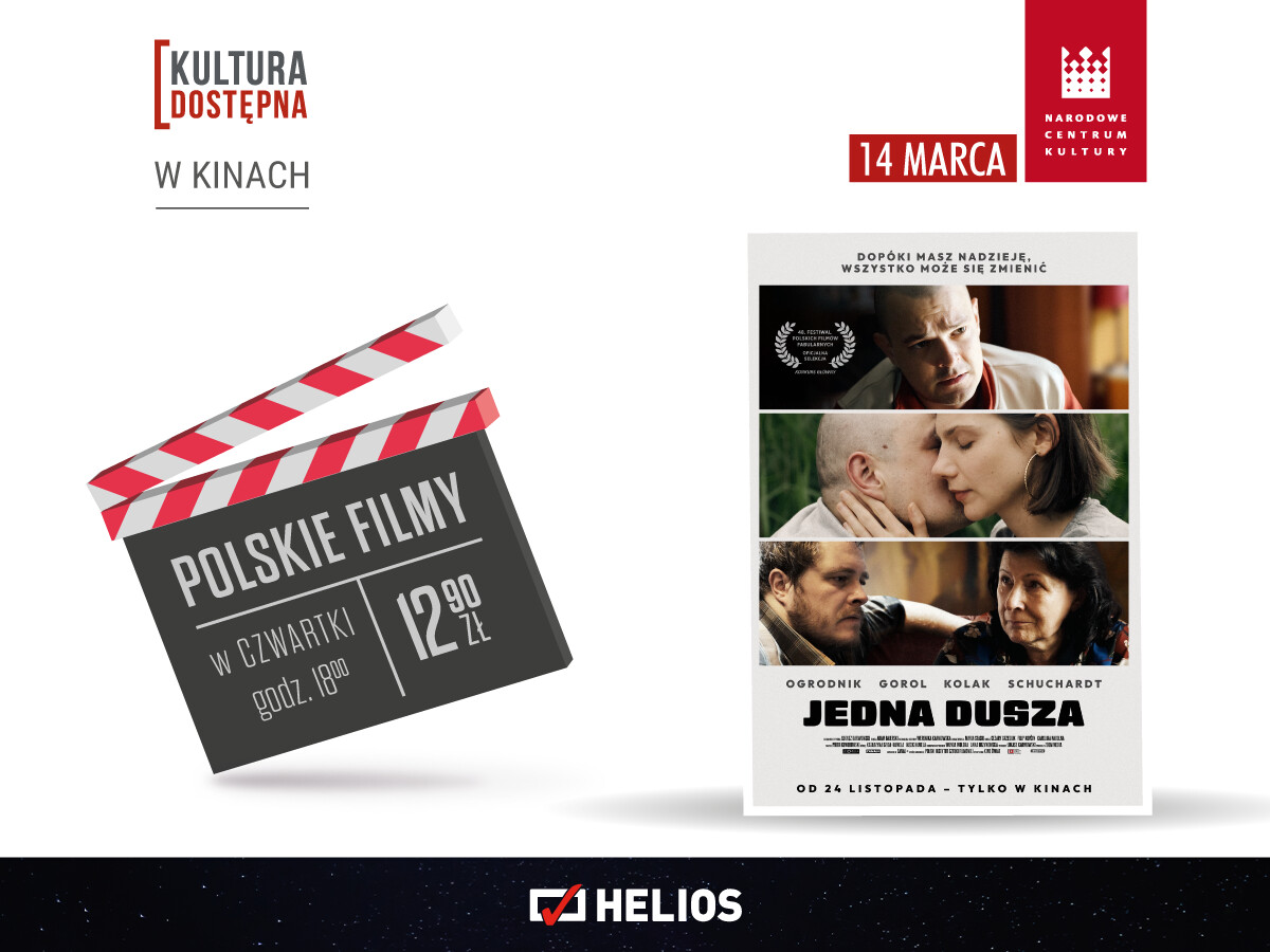Czwartki to popołudnia z cyklem Kultura Dostępna. 14 marca zostanie wyświetlony dramat „Jedna dusza”. Alojz to szanowany górnik, mający jednak skłonność do nadużywania alkoholu, na czym cierpi jego rodzina. Pewnego dnia mężczyzna ratuje życie kolegi w katastrofie w kopalni. Wypadek staje się przełomem w życiu jego najbliższych. W filmie występują między innymi: Dawid Ogrodnik, Małgorzata Gorol i Dorota Kolak.