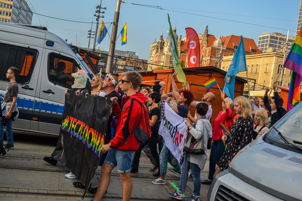 Na całej trasie przemarszu (towarzyszyliśmy pochodowi do rynku) obyło się na szczęście bez nieprzyjemnych incydentów. Jedynym było pojawienie się manifestacji przedstawicieli środowisk prawicowych, niechętnych imprezie. Oba zgromadzenia odbyły się legalnie.