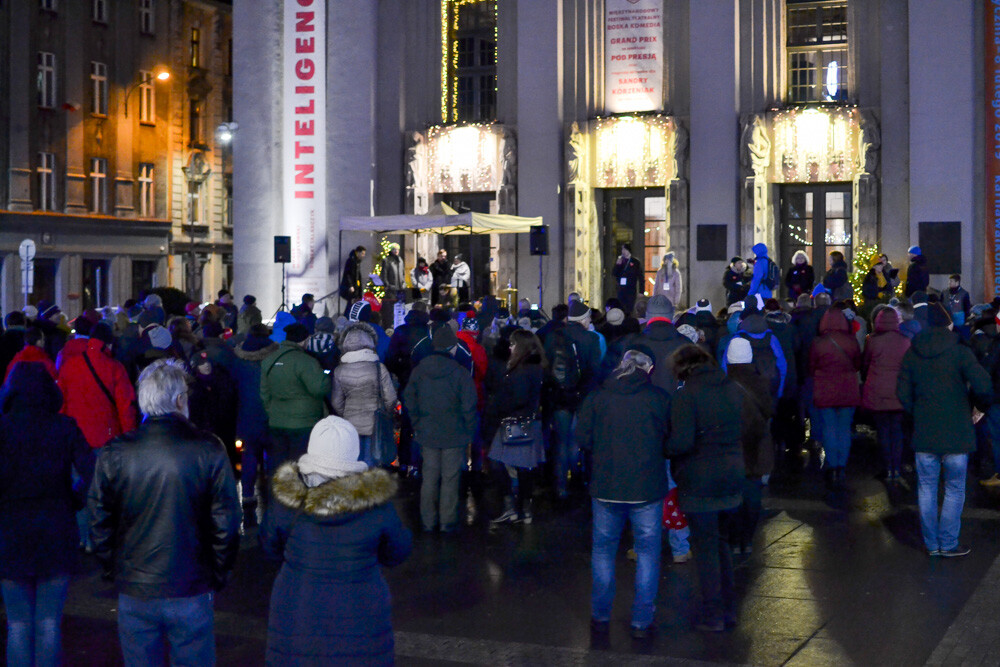 Spory tłum zebrał się - po raz kolejny - pod Teatrem Śląskim, aby wspierać lidera WOŚP i całą Wielką Orkiestrę. Wspomniano także tragicznie zmarłego prezydenta Gdańska Pawła Adamowicza.