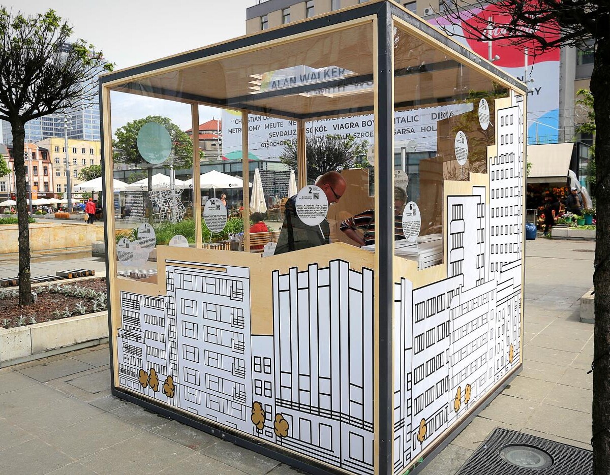 Tegoroczna lauba, czyli altanka, w tym roku prezentuje się nieco inaczej. Została zbudowana z materiałów pochodzących z recyklingu, jest również bardziej przestronna, a przeszklone ściany sprzyjają przyciągnięciu uwagi przechodniów. Oklejona z zewnątrz rysunkami przedstawiającymi obiekty ze Szlaku Moderny zaprasza do poznania architektonicznych perełek z lat 20. i 30. ubiegłego wieku, z których Katowice są dumne.