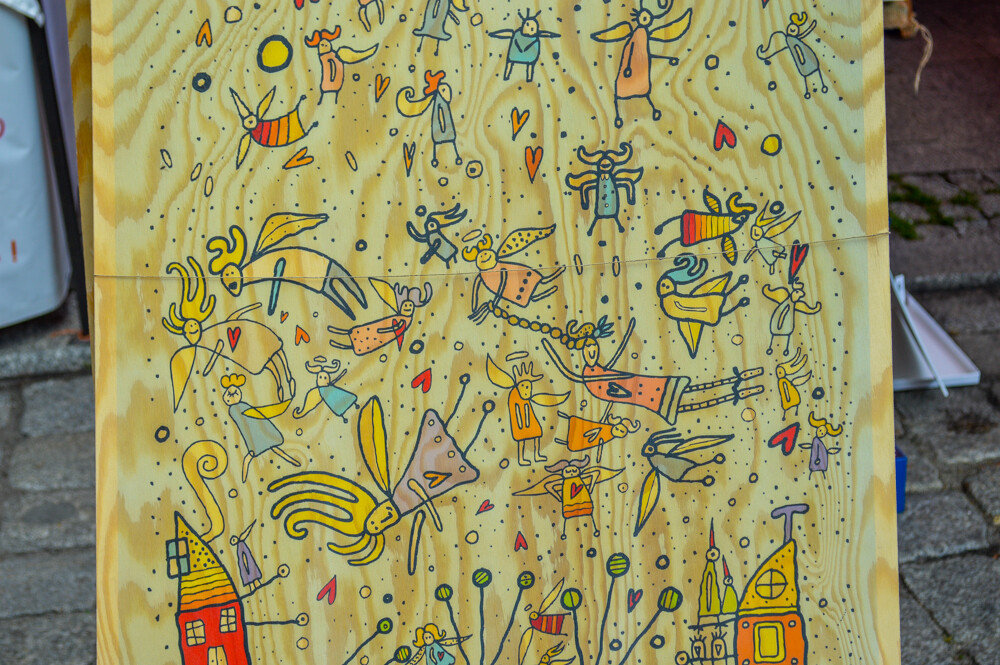 Na miejscu znajdziemy kilkadziesiąt stoisk z rękodziełem - ceramiką, pluszkakami, odzieżą, obrazy i rysunki, pyszną kawę i kreple. Na scenie artyści, przed sceną sporo ludzi, a w tle fenomenalna muzyka (my, gdy byliśmy na miejscu po godzinie 13 podziwialiśmy koncert orkiestry dętej). Jest co podziwiać, czego spróbować i na co się skusić.