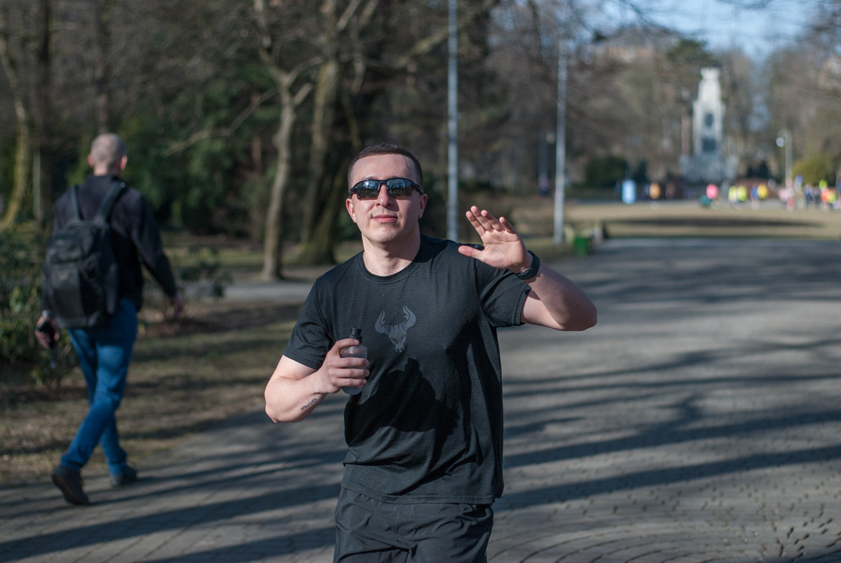 Chwilę po godzinie 9:00, jak co tydzień, spora grupa biegaczy i zawodników w nordic walking wyruszyła w dobrze im znaną trasę, prowadzącą alejkami zazieleniającego się powoli Parku Kościuszki.