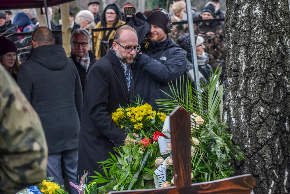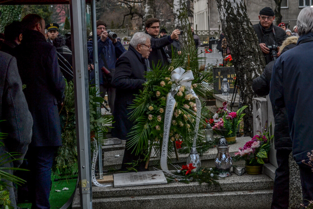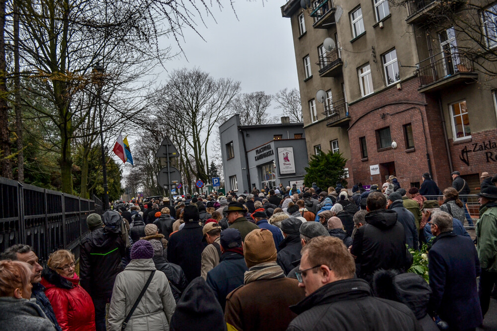 Na pogrzebie zjawiły się setki osób, z Katowic, rodzinnych Szopienic i całego kraju. Artyści, współpracownicy (jak Zbigniew Zamachowski czy Anna Dymna), politycy, przedstawiciele mediów, kleru. W towarzystwie orkiestry i służb mundurowych, kondukt ruszył na cmentarz przy ul. Sienkiewicza. Prochy reżysera złożono do grobu, który szybko pokrył się wieńcami kwiatów. Na jego cześć żołnierze oddali salwę honorową.