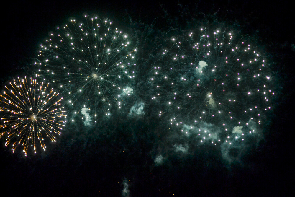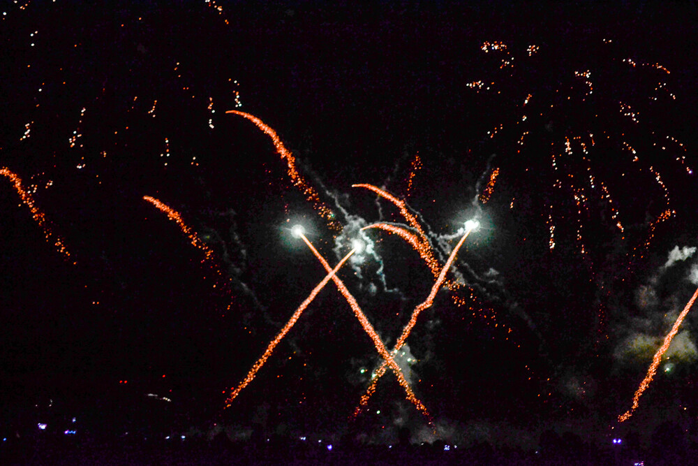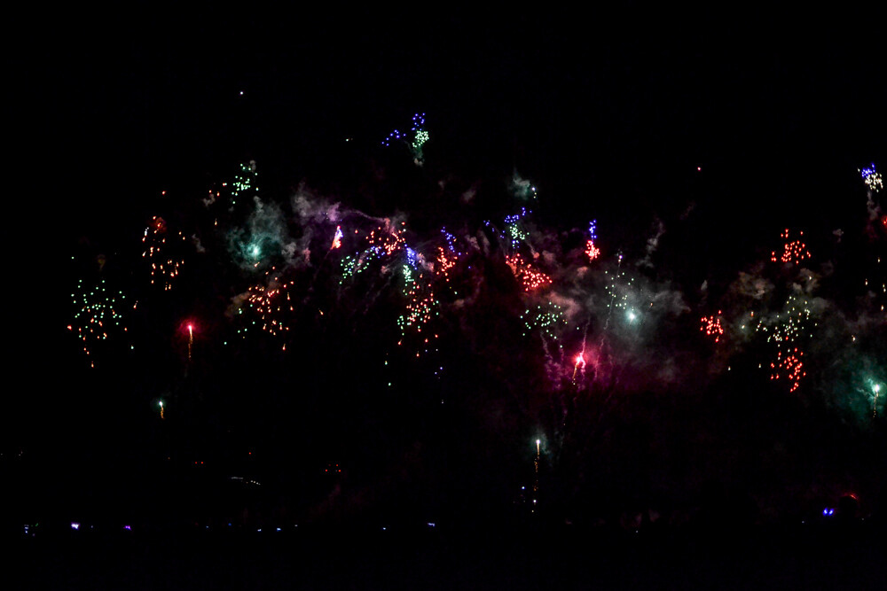 Punkt 21:40 rozpoczęły się pierwsze prezentacje laserowe (każdorazowo poprzedzały fireshow), a następnie zapoczątkowano to, na co czekali wszyscy zgromadzeni - fajerwerki. Trzy duże pokazy - kolejno o 21:40, 22:25 i 23:15 rozświetliły niebo, hukiem oznajmiając swoją obecność. Całość słyszana była nawet w okolicy Ligoty, a nawet dzielnic południowych (na co sporo osób narzekało).