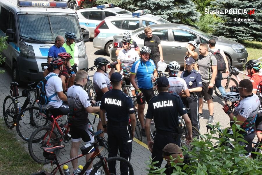 Wczoraj kilka minut po godz. 13 przed katowicką Komendę dotarła grupa uczestników II charytatywnej sztafety rowerowej organizowanej pod nazwą „Mundur na rowerze”. Grupę tworzą mundurowi z różnych instytucji, którzy są miłośnikami jazdy na rowerze oraz nie jest im obojętny los innych mundurowych, szczególnie tych którzy wymagają wsparcia. Przed budynkiem katowickiej Komendy z cyklistami spotkała się Naczelnik Wydziału Prewencji tutejszej komendy podinsp. Renata Hałabuda, która życzyła uczestnikom wytrwałości oraz spokoju i bezpieczeństwa podczas pokonywania kolejnych etapów trasy. Do grupy rowerzystów dołączyli policjanci z katowickiej komendy oraz funkcjonariusz Laboratorium Kryminalistycznego Komendy Wojewódzkiej Policji. Po symbolicznym przekazaniu charakterystycznej żółtej bransolety, która jest odpowiednikiem pałeczki przekazywanej w trakcie sztafety, mundurowi ruszyli w dalszą trasę. Kolejne przystanki na trasie to Komenda Państwowej Straży Pożarnej w Katowicach, Komendy w Gliwicach, Zabrzu, a meta planowana jest na godz. 20.00 w Zawierciu.