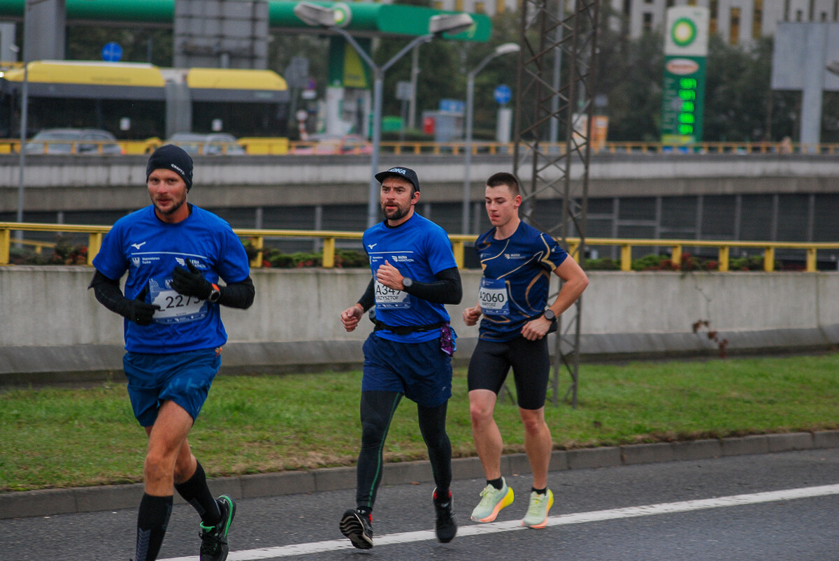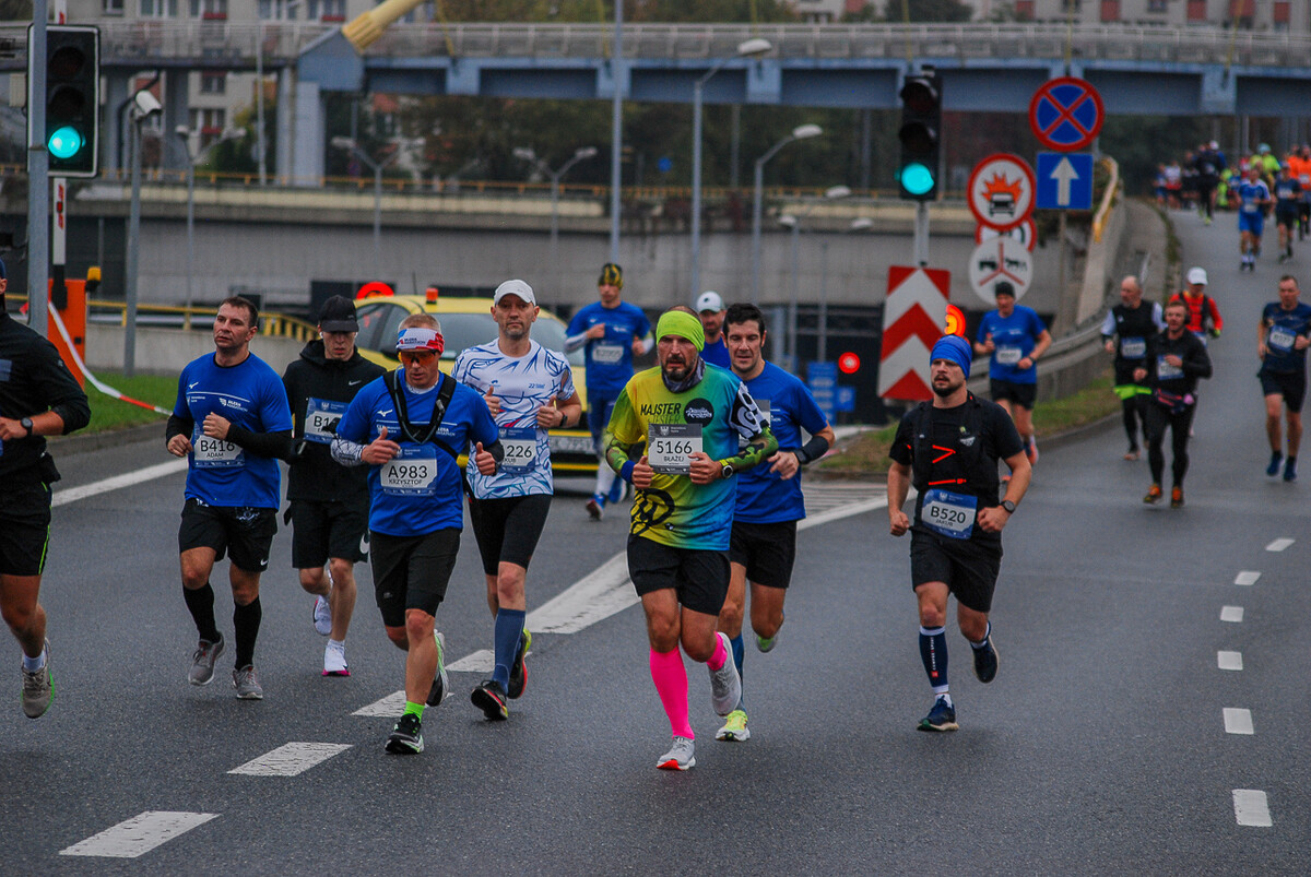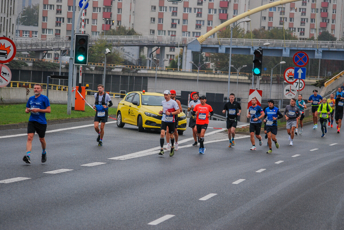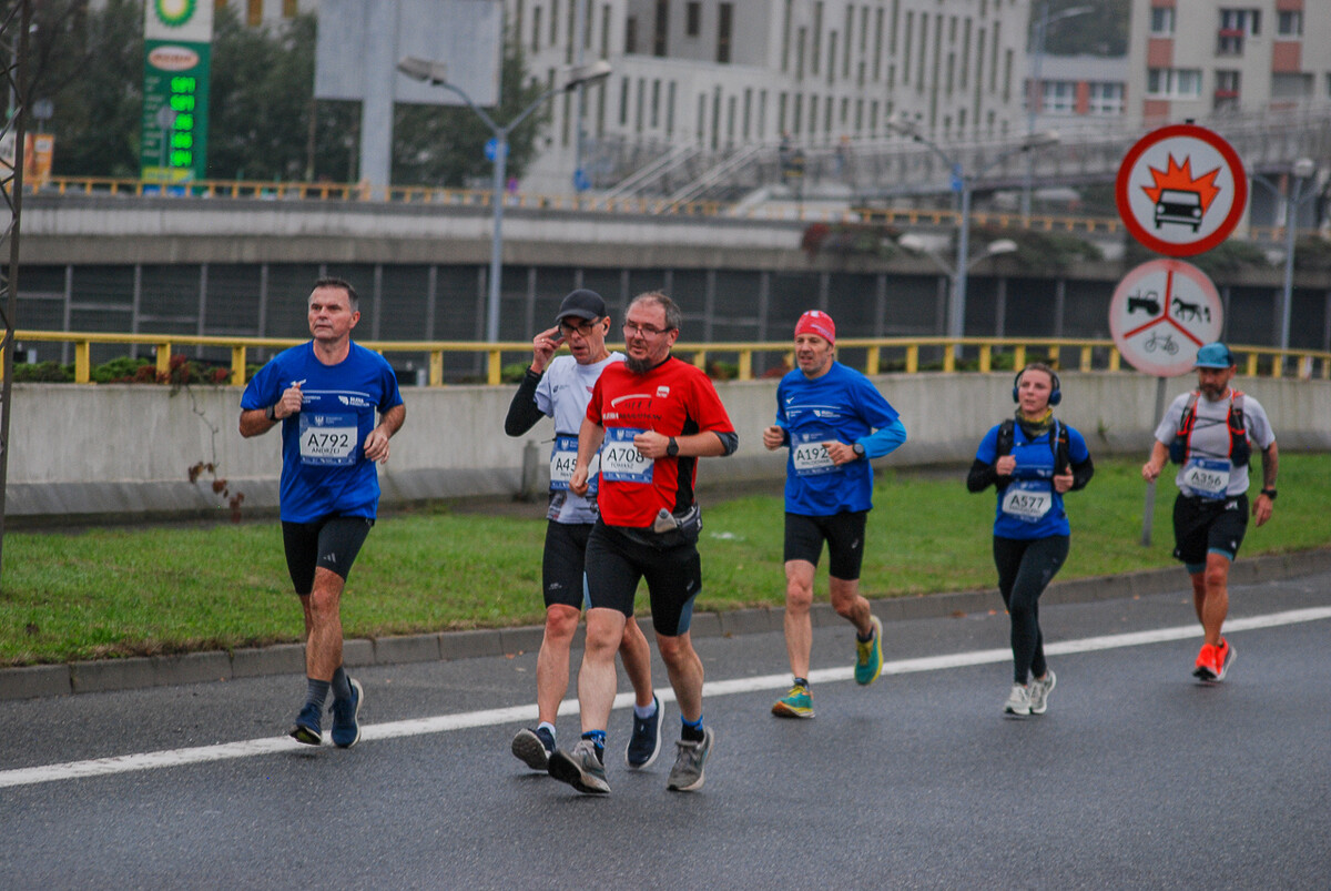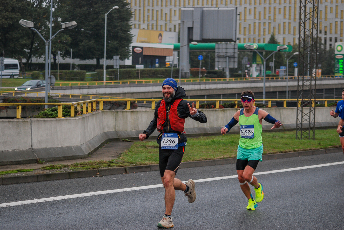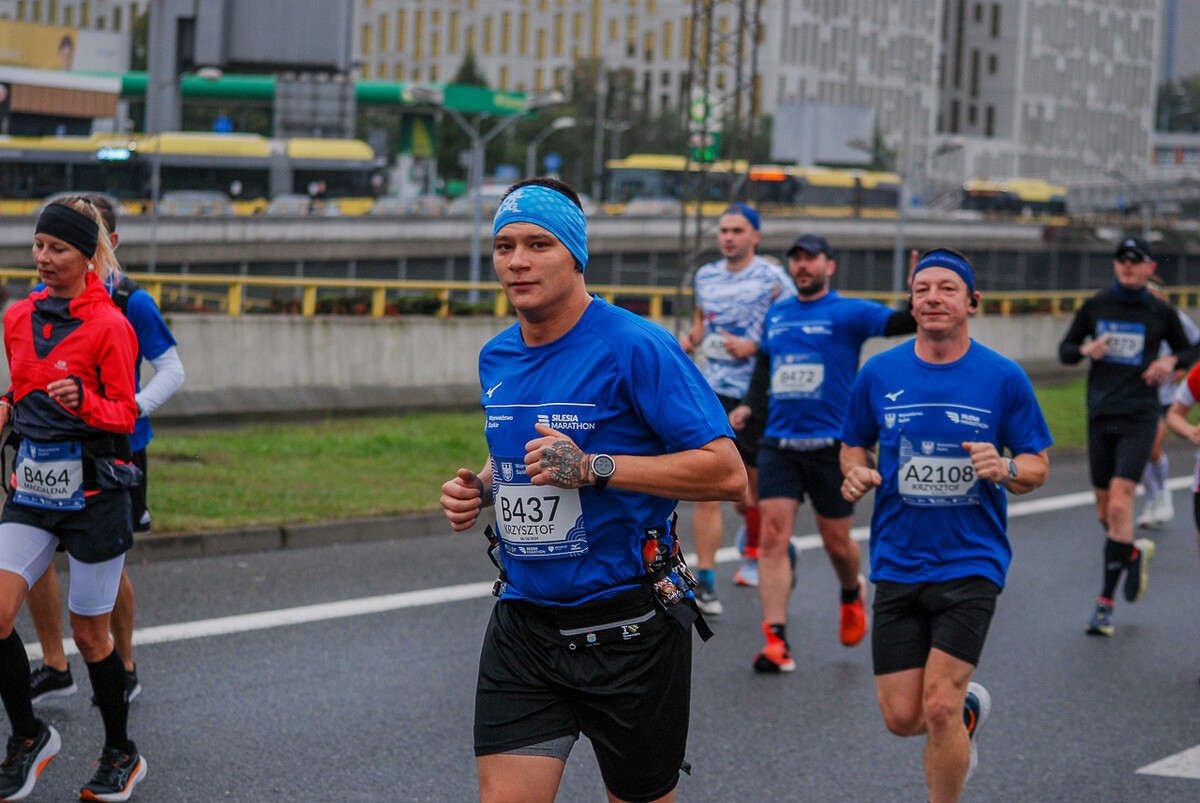 Równo o godzinie 8:00 ruszyła pierwsza grupa maratończyków, gotowych by zmierzyć się z królewskim dystansem. Pogoda dopisuje, trasa licząca ponad 42km jest odpowiednio przygotowana i obstawiona, a na ulicach względny spokój (przynajmniej w Katowicach bez dużych utrudnień, policja i służby porządkowe dbają o porządek). Pięć minut po pierwszej fali ruszyła druga, bardzo liczna grupa biegaczy.