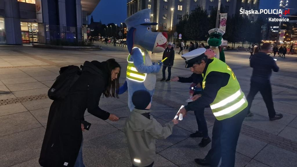 Katowiccy policjanci wraz z partnerami przeprowadzili akcję profilaktyczno-edukacyjną pn. „Świeć przykładem – noś odblaski”, w trakcie której promowali bezpieczeństwo w ruchu drogowym. Na katowickim Rynku można było porozmawiać o bezpieczeństwie pieszych, obowiązujących przepisach, a także o postawach zwiększających bezpieczeństwo w ruchu drogowym. Każdy pieszy otrzymał odblaskową opaskę, która zwiększa jego bezpieczeństwo po zmroku.
