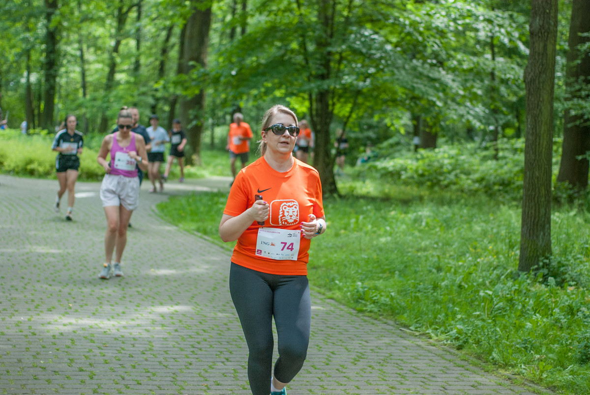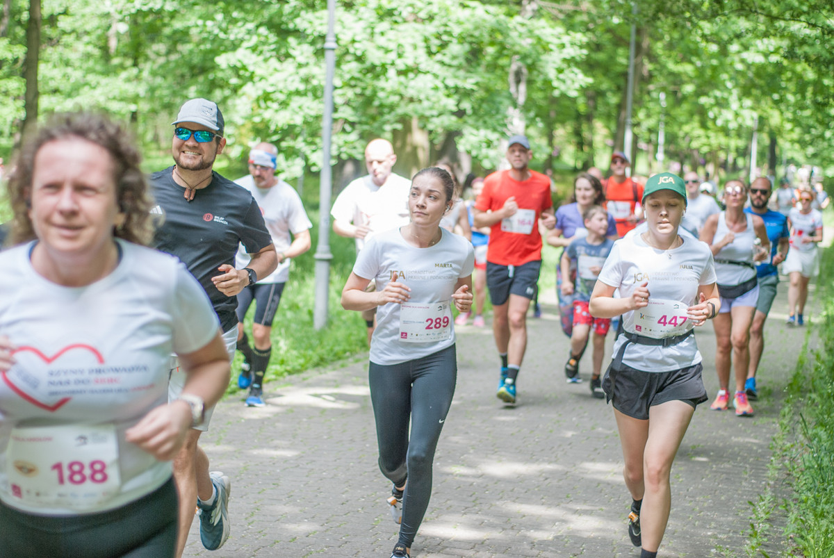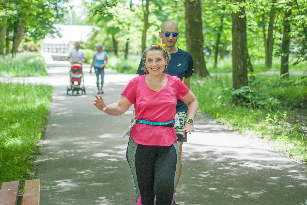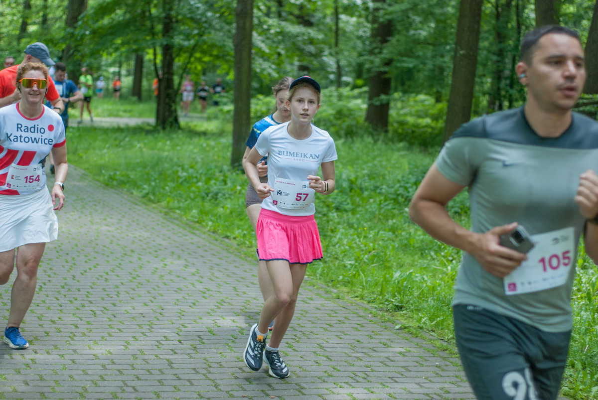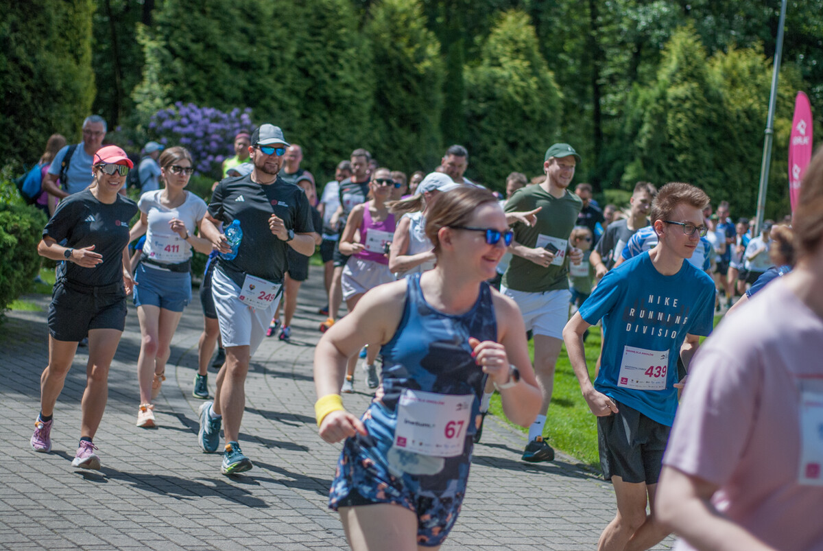 O 11:30 wystartowali zawodnicy biorący udział w biegu głównym na dystansie 5 km. Czekały na nich dwie pętle liczące 2,5 km, prowadzące po trasie którą standardowo, co sobotę, truchtają uczestnicy parkrun Katowice. Tu uczestników było już kilkuset.