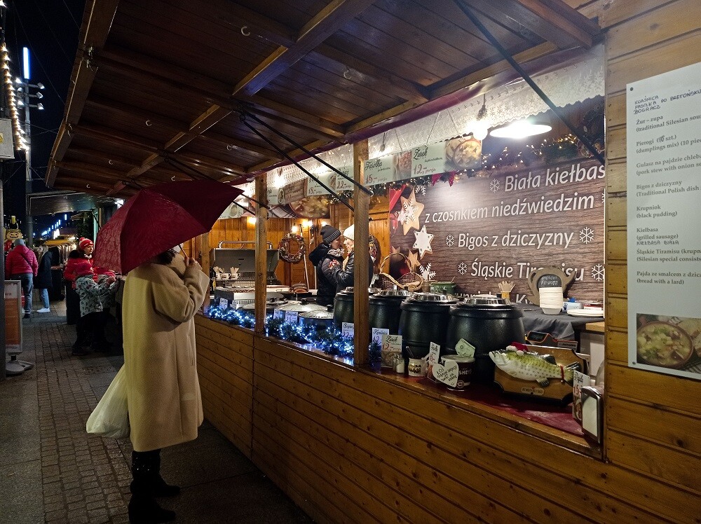 Na katowickim rynku nie brakuje stoisk ze świątecznymi ozdobami, artystycznymi wyrobami, czy lokalnymi przysmakami. Smakosze znajdą tam m.in. ręcznie zdobione pierniki, lizaki, domowe soki, naturalne miody, sery, likiery, wędliny i wiele innych. Na chłodną pogodę najlepiej sprawdzi się także herbata, kawa i grzane wino.
