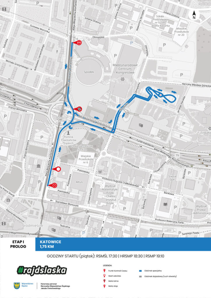 Zmiany w organizacji ruchu będą obowiązywały 9 września od godz. 15.00 do 22.00. Z ruchu wyłączone zostaną drogi, którymi przejadą rajdowcy, a dodatkowo prawy pas ul. Moniuszki - od skrzyżowania z ul. Uniwersytecką do al. Korfantego. Pozostanie możliwość przejazdu z ul. Moniuszki do ul. Piotra Skargi. Ulica Uniwersytecka zostanie zamknięta od ronda Pietera do al. Roździeńskiego. Zamknięta zostanie północna jezdnia al. Roździeńskiego - od ronda gen. Ziętka do skrzyżowania z ul. Dudy-Gracza i Dobrowolskiego i południowa - od ronda do wyjazdu z ul. Uniwersyteckiej. Zostanie utrzymana możliwość wyjazdu z ul. Olimpijskiej w al. Korfantego w obu kierunkach – w stronę Siemianowic oraz do ronda Ziętka. Rondem Ziętka będzie można przejechać tylko z północy na południe oraz z zachodu na południe, natomiast ruch tunelem będzie odbywał się w obu kierunkach. Dodatkowo zamknięte zostaną przejścia dla pieszych zlokalizowane na trasie rajdu.