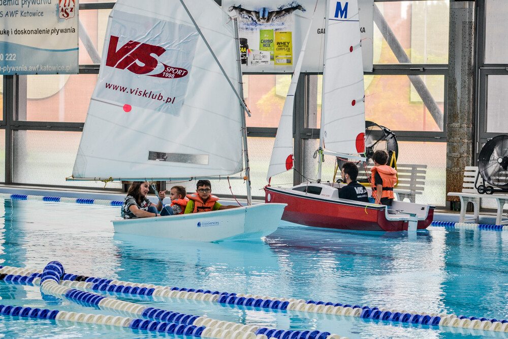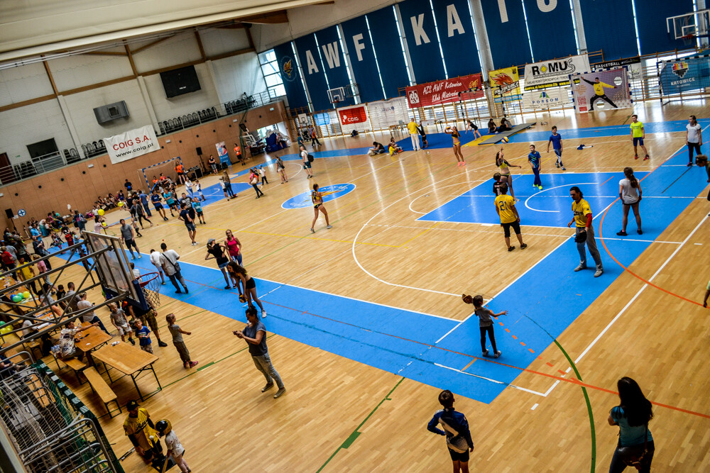 Na miejsce dotarliśmy około godziny 15, kiedy na kortach wokół budynków AWF było już pustawo. Okazało się, że imprezę zakłóciły opady deszczu i... kilkaset osób udało się do budynków Akademii Wychowania Fizycznego. Tam, na hali, w holu i na basenie urządzono zwody w kilkunastu dyscyplinach.