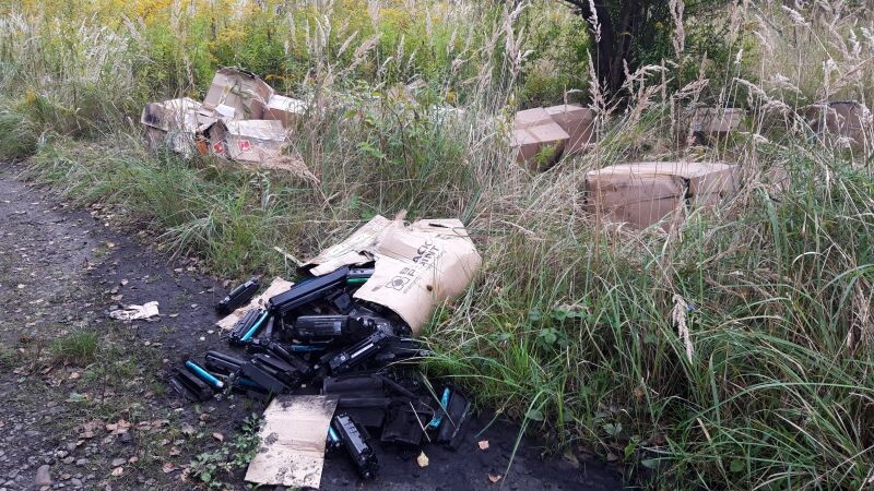 Dwa nielegalne wysypiska śmieci zlikwidowali w ostatnim czasie strażnicy miejscy. Znajdowały się tam zużyte tonery do drukarek i kserokopiarek. Autor dzikich wysypisk został ukarany mandatami.
