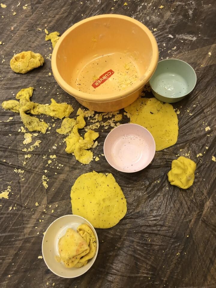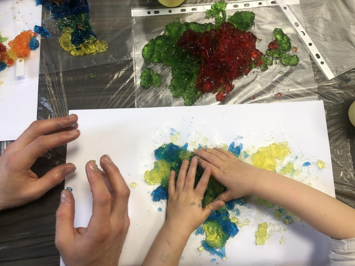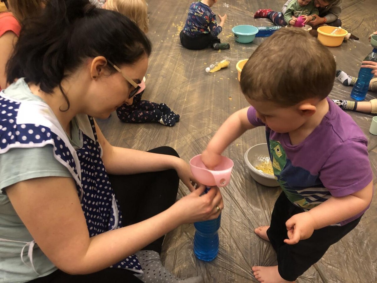 Podczas spotkań dzieci miały okazję poeksperymentować z różnorodnymi i bezpiecznymi produktami spożywczymi, które przekształcały w fascynujące masy sensoryczne, dywany sensoryczne, a nawet tworzyły swoje niezwykłe butelki i lampy! Zajęcia sensoplastyczne to nie tylko możliwość wyrażania swojej wyobraźni, ale również doskonała okazja do rozwijania zdolności manualnych, wspomagających rozwój małych rączek.