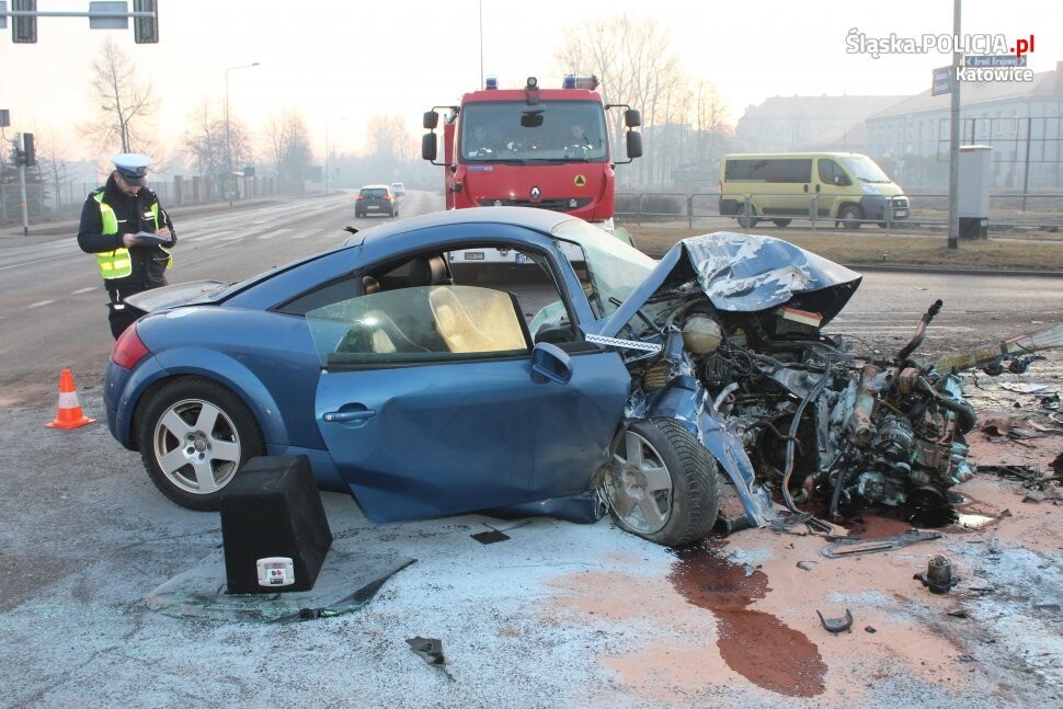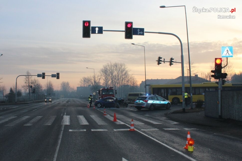 Jak wstępnie ustalono, 20- letni kierowca audi, przejechał skrzyżowanie na czerwonym świetle i zderzył się z autobusem. Dokładne przyczyny i okoliczności wypadku wyjaśniają policjanci z Katowic.