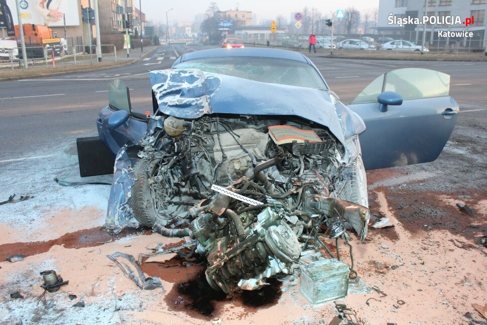 Do zdarzenia doszło kilkanaście minut po godzinie 4.00 w Katowicach. Jak wynika ze wstępnych ustaleń policjantów, 20-latek kierujący audi, jadąc ulicą Kościuszki w kierunku centrum, na skrzyżowaniu z ulicą Armii Krajowej przejechał na czerwonym świetle i doprowadził do zderzenia z autobusem. Kierowca audi z obrażeniami ciała został przewieziony do szpitala. Pod opiekę lekarzy trafił również kierowca autobusu oraz pasażerka. Dokładne okoliczności zdarzenia wyjaśniają policjanci z Wydziału do Walki z Przestępczością przeciwko Mieniu Komendy Miejskiej Policji w Katowicach.
