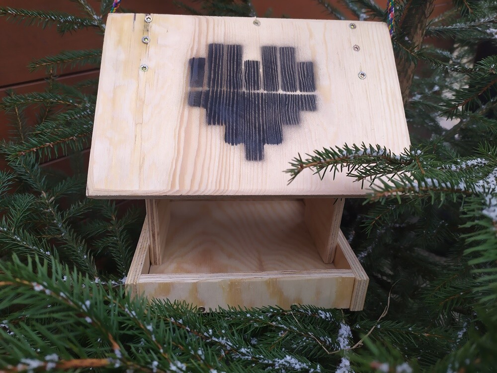 Zestawy karmników do samodzielnego złożenia zawierają powycinane ze sklejki elementy, wkręty, śrubokręt i papier ścierny a także instrukcję dokarmiania ptaków i obrazkową instrukcją montażu karmnika. Na daszkach mają czarne serce, logo miasta.