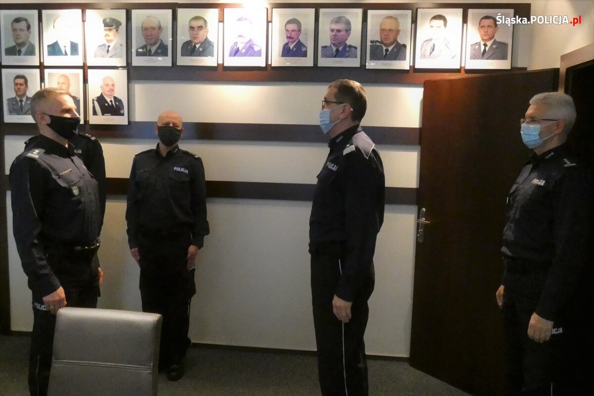 Rozkazy odczytał Naczelnik Wydziału Kadr Komendy Wojewódzkiej Policji w Katowicach mł. insp. Sławomir Zynek, a Komendant Wojewódzki Policji w Katowicach nadinsp. Roman Rabsztyn oraz I Zastępca Komendanta Wojewódzkiego insp. Mariusz Krzystyniak życzyli policjantom sukcesów na nowych stanowiskach służbowych.