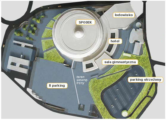 Hala Widowiskowo-Sportowa Spodek w Katowicach to budynek niezwykłym kształcie architektonicznym tworzą współpracujący i wzajemnie uzupełniający się kompleks, który zajmuje obszar prawie 7 ha. Jego wielofunkcyjny, uniwersalny charakter pozwala na zorganizowanie różnorodnych wydarzeń: artystycznych, sportowych, wystaw, targów, a także kongresów, zjazdów oraz szkoleń, mogących odbywać się jednocześnie na wszystkich obiektach.
