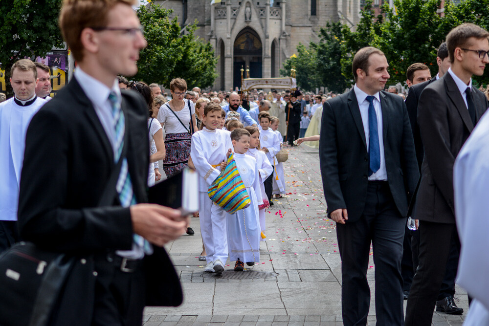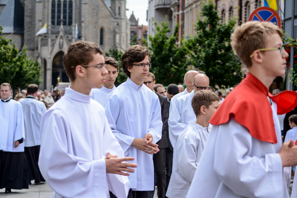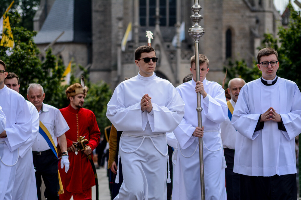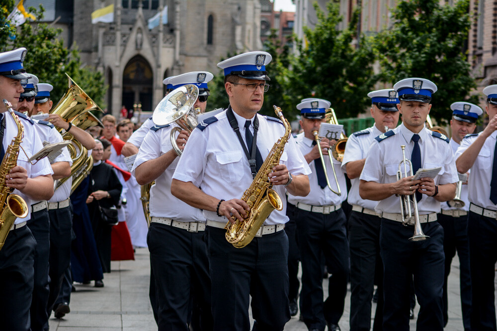 Od kościoła przy ul. Mariackiej, przez ul. Francuską, Jagiellońską, pl. Miarki, aż po Archikatedrę Chrystusa Króla przeszła procesja w skład której weszli przedstawiciele duchowieństwa, służb mundurowych i mieszkańcy regionu, w tym także sporo dzieci w wieku komunijnym. Pochód wyruszył po godzinie 10, gdy zakończono mszę świętą, a o godzinie 12 została odprawiona msza pontyfikalna.