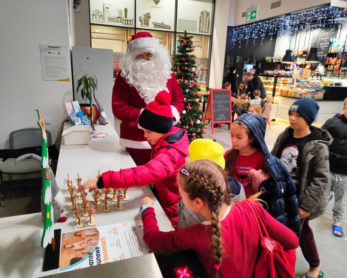 Trzech Mikołajów rozjechało się po basenach Brynów, Zadole i Burowiec. W czerwonych strojach, okrągłych okularach, z długimi brodami i workami pełnymi niespodzianek. Od 8.00 do 14.00 rozdawali lizaki i figurki o kształcie kropelki – symbolu katowickich basenów. Nim odjechali na koło podbiegunowe, pozowali do wspólnych zdjęć i rozmawiali o Laponii, gdzie mieszka Święty Mikołaj.