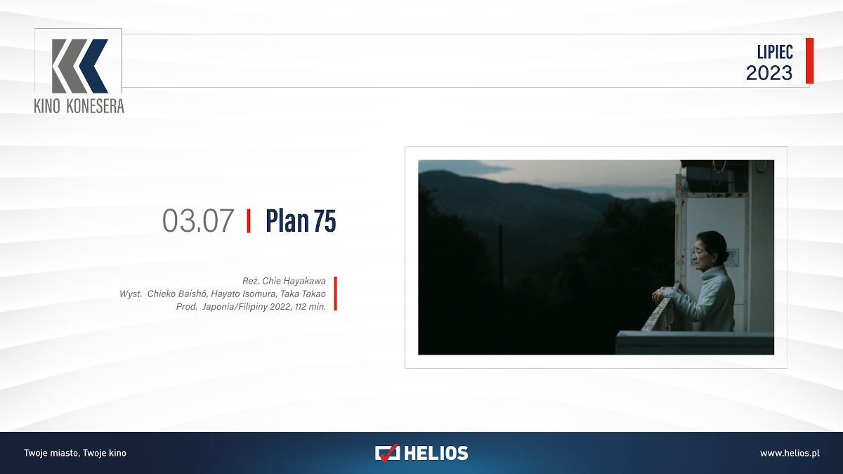 W poniedziałek, 3 lipca w ramach cyklu Kino Konesera zaprezentowany zostanie film „Plan 75”. Japonia to kraj słynący z rozwiniętej technologii oraz doskonałej opieki medycznej, które przekładają się na wysoką średnią życia jej obywateli. W połączeniu z niskim współczynnikiem dzietności stanowi to jednak dla rządu sygnał alarmowy. Starzejące się społeczeństwo jest zapowiedzią kryzysu ekonomicznego oraz zaburzenia równowagi państwa. Rozwiązaniem ma być rządowy program kryjący się pod nazwą Plan 75. Zachęca on do eutanazji osoby, które ukończyły siedemdziesiąty piąty rok życia. Obecne na każdym kroku reklamy, adresowane do zdezorientowanych seniorów, zachwalają korzyści, jakie płyną z rewolucyjnego programu. Jednym z argumentów ma być wynagrodzenie, które balansującym na granicy ubóstwa uczestnikom Planu pozwoli zrealizować ostatnie marzenie...